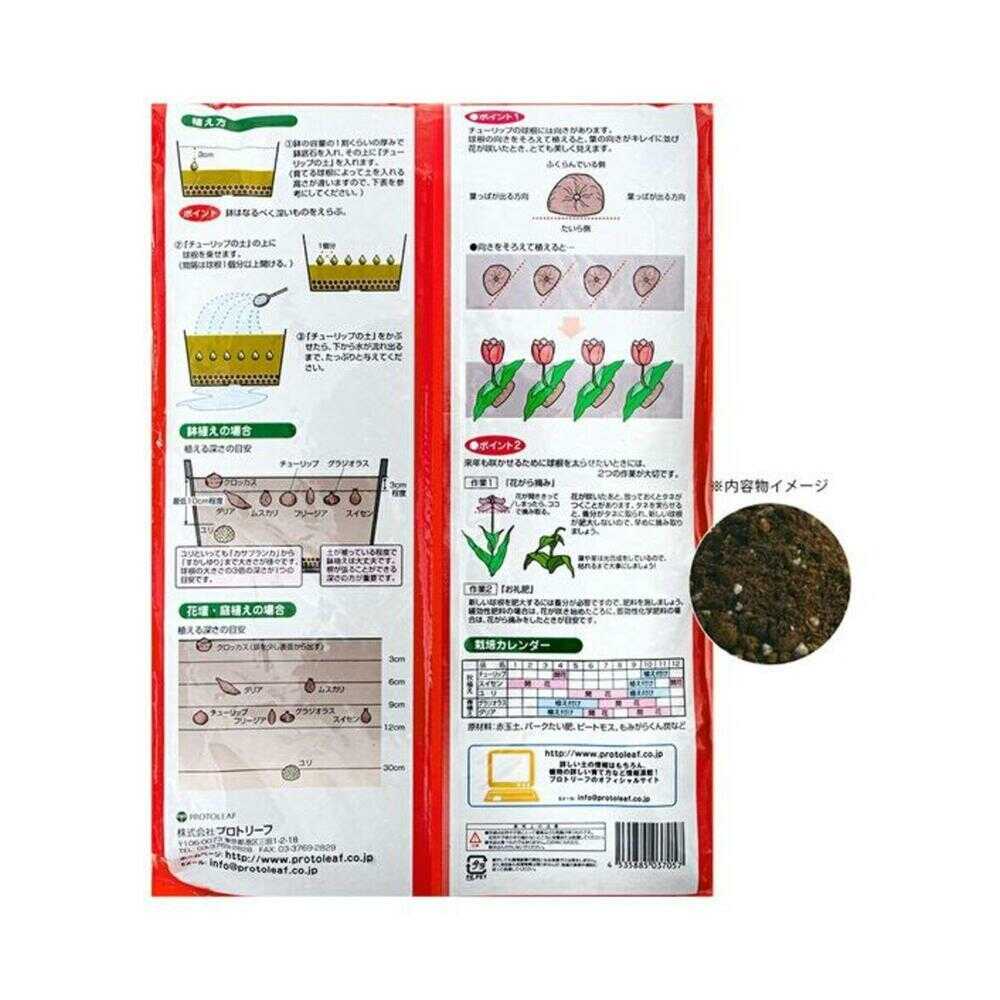 チューリップを育てるのはこの土でOK 【特徴】 ・理想的な物理性と化学性を実現した培養土 ・春植え・秋植え球根全般におすすめ ・初期生育に必要な栄養素入り