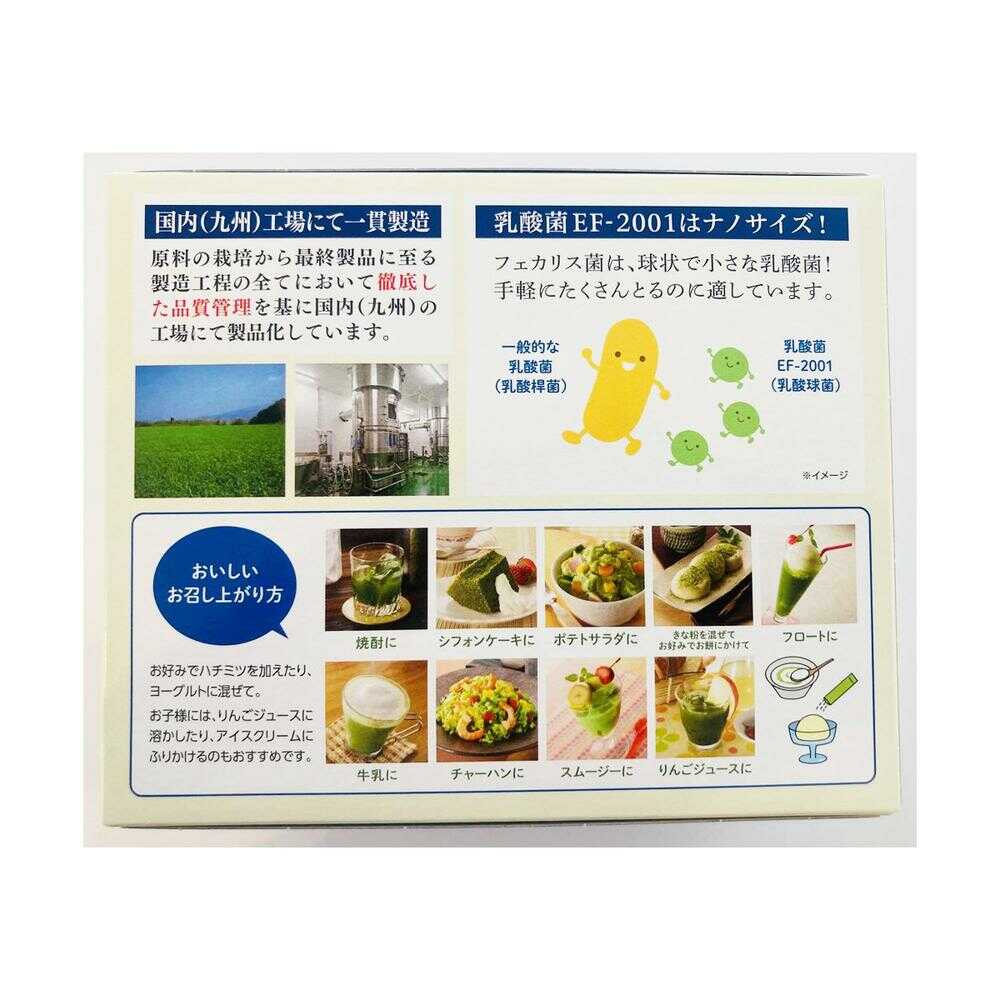 九州産大麦若葉とフェカリス乳酸菌(EF-2001 )100億個配合した青汁です。
