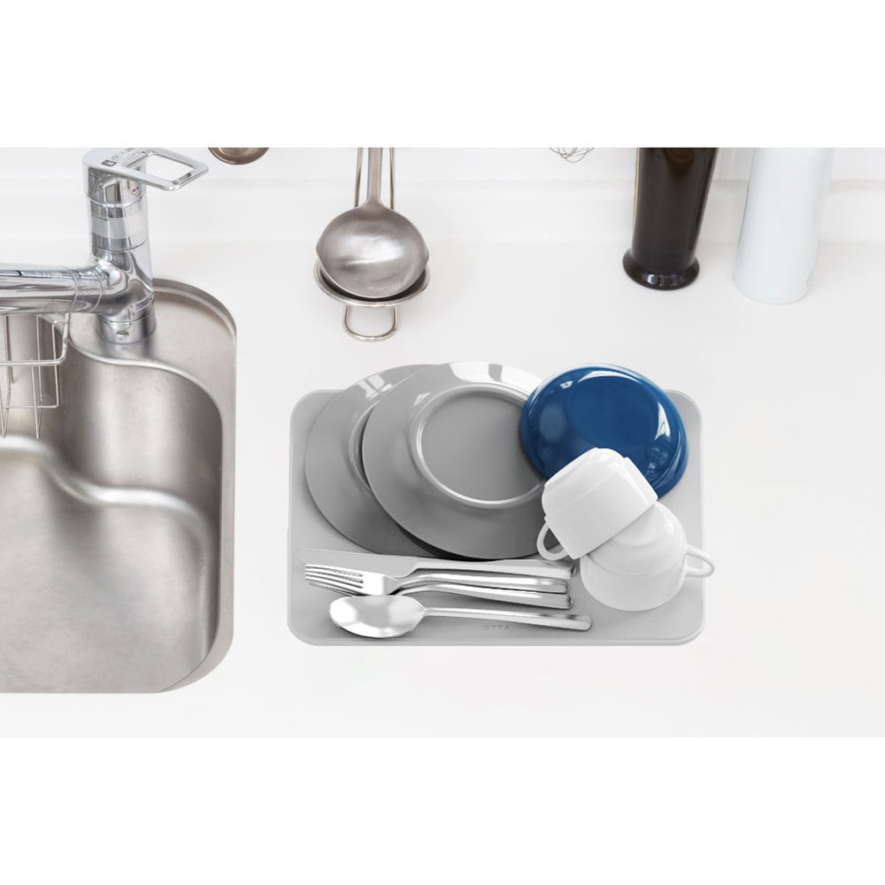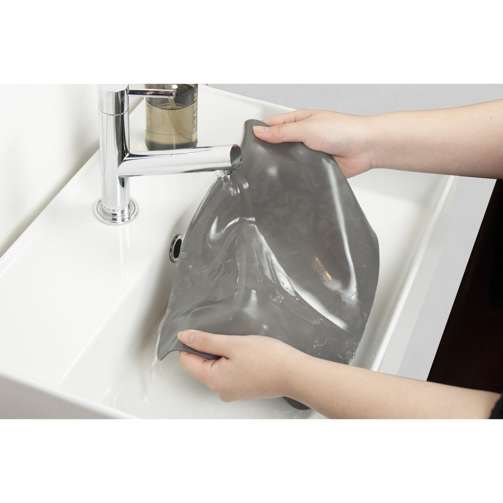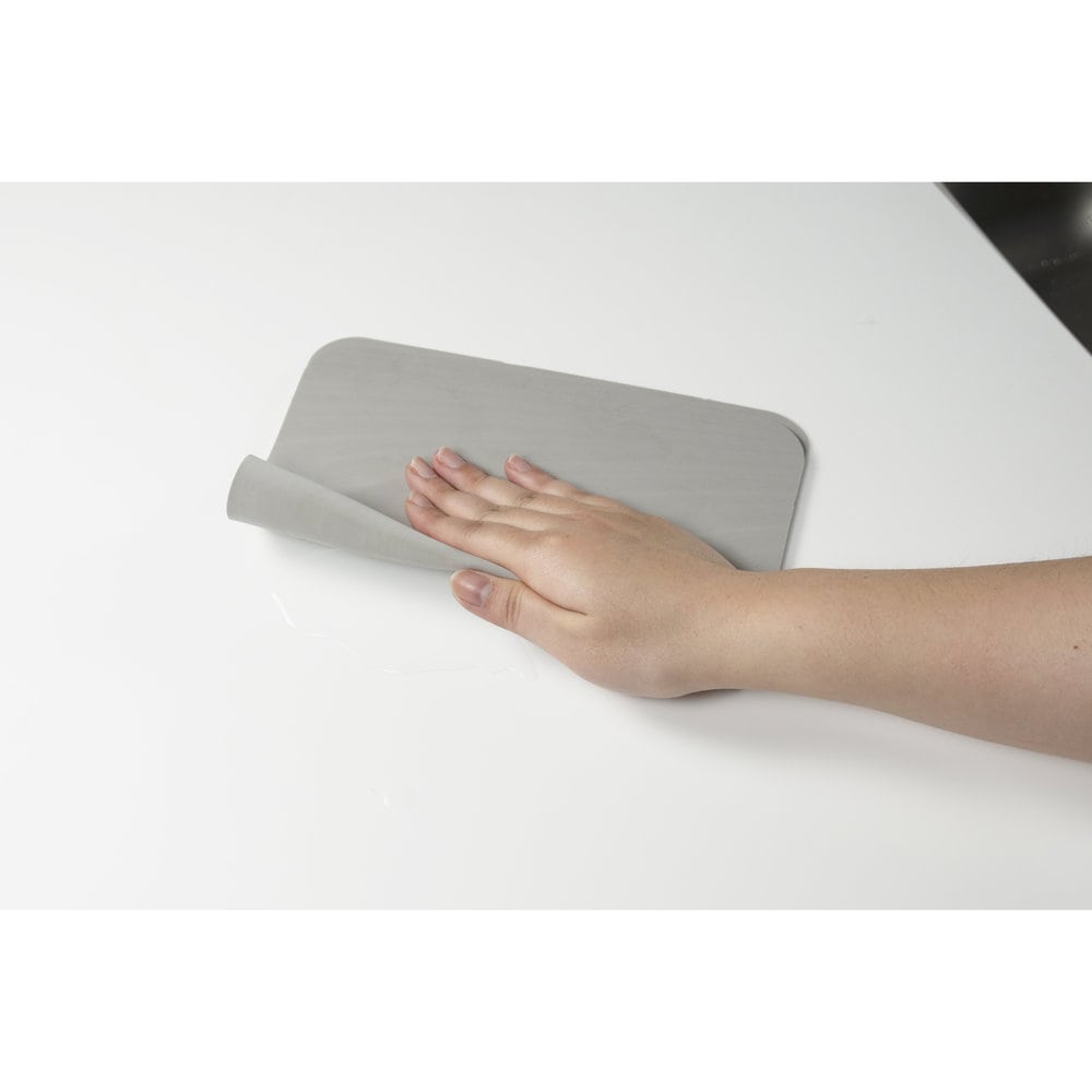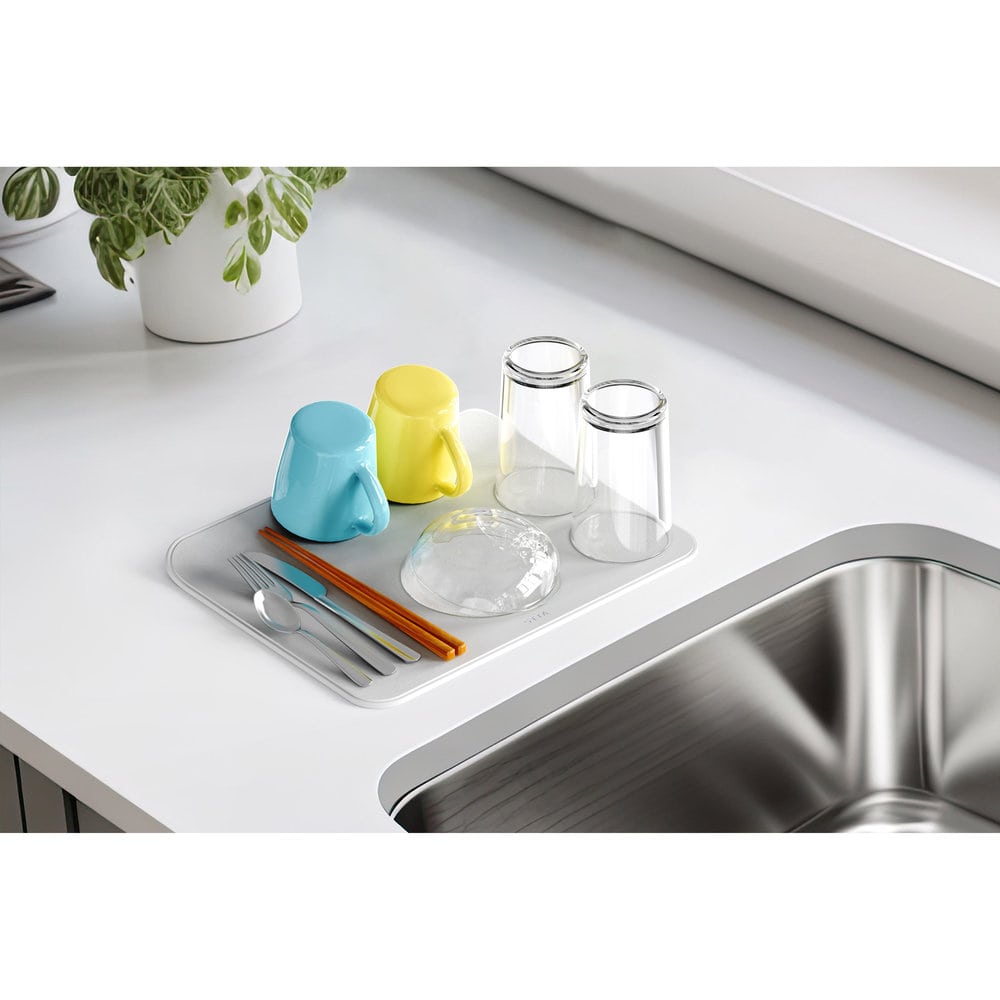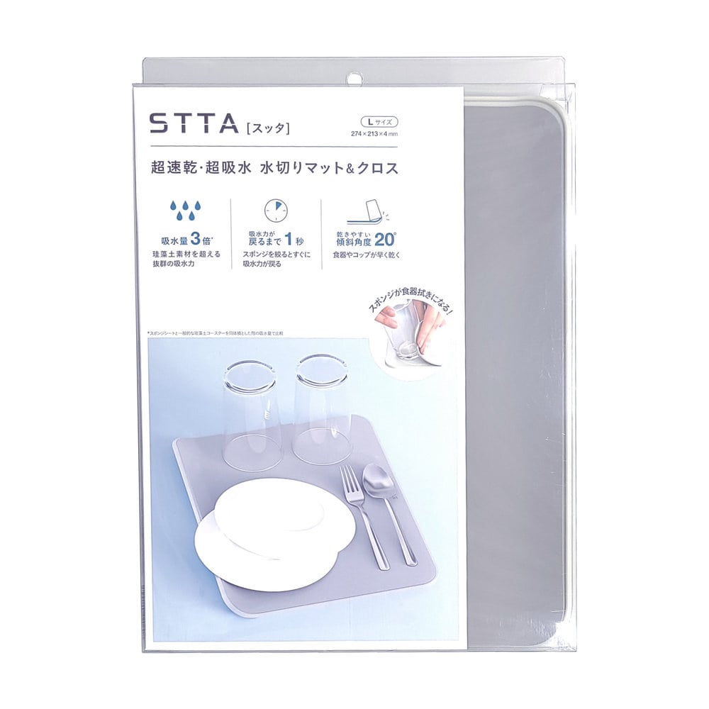 マットは食器拭きにもなり、絞ることで吸水力が回復するので乾燥を待たずにくり返しご使用頂けます。手洗いができるためお手入れも簡単です。マットに使用している超吸水スポンジは珪藻土素材をしのぐほどの吸水力で食器などを素早く乾燥させます。柔らかくクッション性があるので落としても割れることがなく、食器などを傷つける心配もありません。絞るとすぐに吸水力が戻るのがこの特殊スポンジの特量です。乾燥を待つことなく、何度でも吸水可能です。シリコーンマットに角度をつけ、通気性を高めたことで、置いた食器やコップが早く乾きます。スポンジシートは、手洗い可能です。中性洗剤も使用できるため、清潔に保つことができます。スポンジシートは簡単に取外し可能。クロスとして、濡れた調理台や洗面所を拭くこともできます。