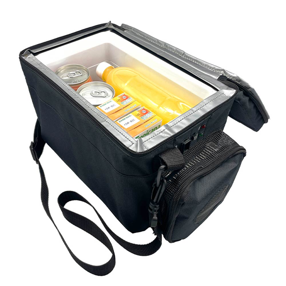●保冷・保温でオールシーズン使えるバッグ型保冷温庫 ●1台2役「保冷&保温」スイッチ1つで切替え ●ドライブ、車中泊、アウトドア、買い物に ●付属の電源ケーブルをシガーソケットに差すだけ ●12V車専用 ●持ち運び簡単 肩掛けベルト付き ●小さいながら十分な容量:収納目安:500mlペットボトル4本/350ml缶6本/185ml缶12本 ・本体サイズ:約(W)345×(D)205×(H)220mm ・庫内サイズ:約(W)235×(D)135×(H)150mm ・本体重量:約1.2kg ・容量:5L ・収納目安:185ml缶:12本/350ml缶:6本/500mlペットボトル:4本 ・冷温方式:ペルチェ式 ・電源:DC12V ・消費電力:保冷:45W/保温:42W ・温度範囲:保冷:5~15C/保温50~55C(周囲温度により変動) ・運転音:約40dB ・推奨環境温度:約15~30C ・材質: (外装)オックスフォード (内装)ABS、アルミ ・電源コード長:約1.3m ・保証期間:ご購入日より6ヶ月間(但し、メーカー保証規定に基づきます。) ・製造国:中国