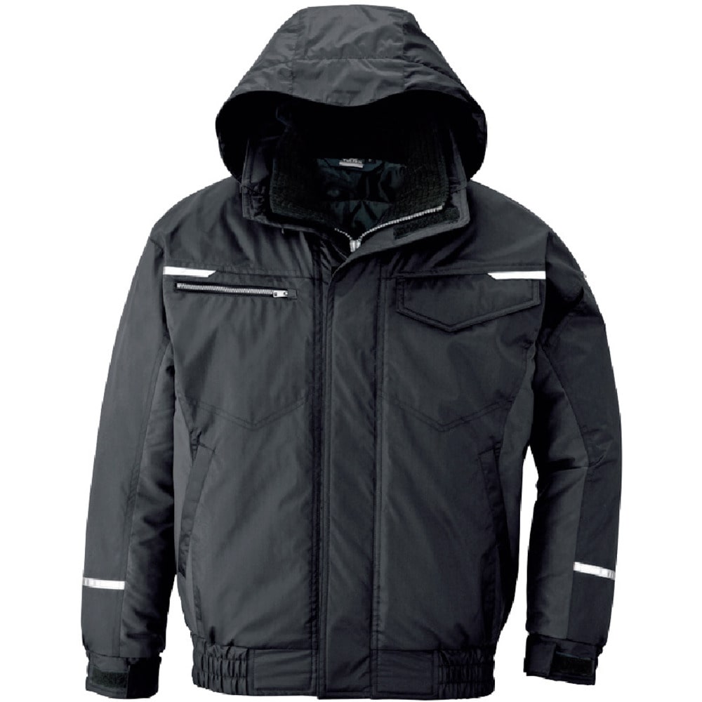●制電基準JIS T8118適合品です。●防風機能付きで保温効果があります。●撥水機能付きです。●360度反射材付きで安全性にも配慮しています。●フード取り外し可能です。●色:ブラック●サイズ:LL●着丈(cm):72●胸囲(cm):135●肩幅(cm):57●袖丈(cm):62●適合胸囲(cm):135●制電防止:JIS T8118適合品 質量780g