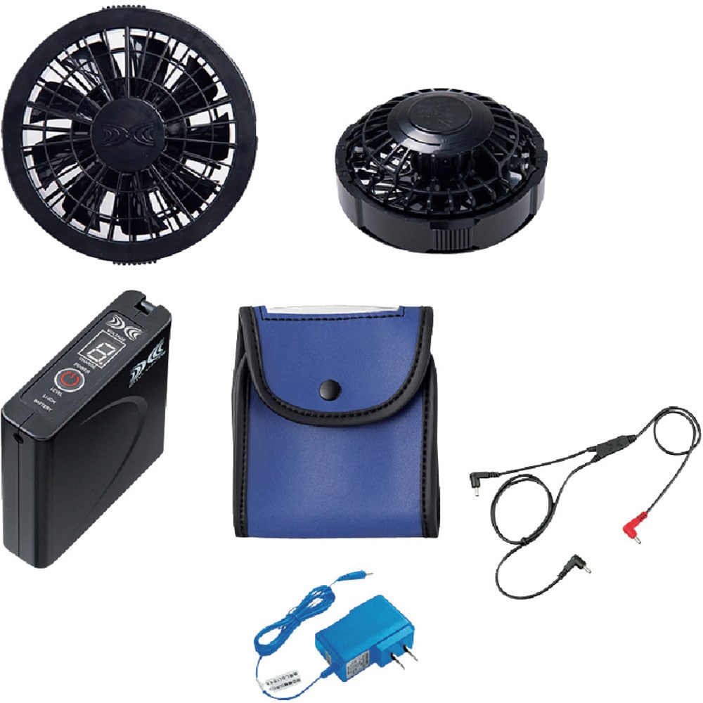 ●空調服専用大容量リチウムイオンバッテリー/ワンタッチファン(ブラック)/急速充電器/収納袋/落下防止ヒモのフルセットです。●色:ブラック 質量800g