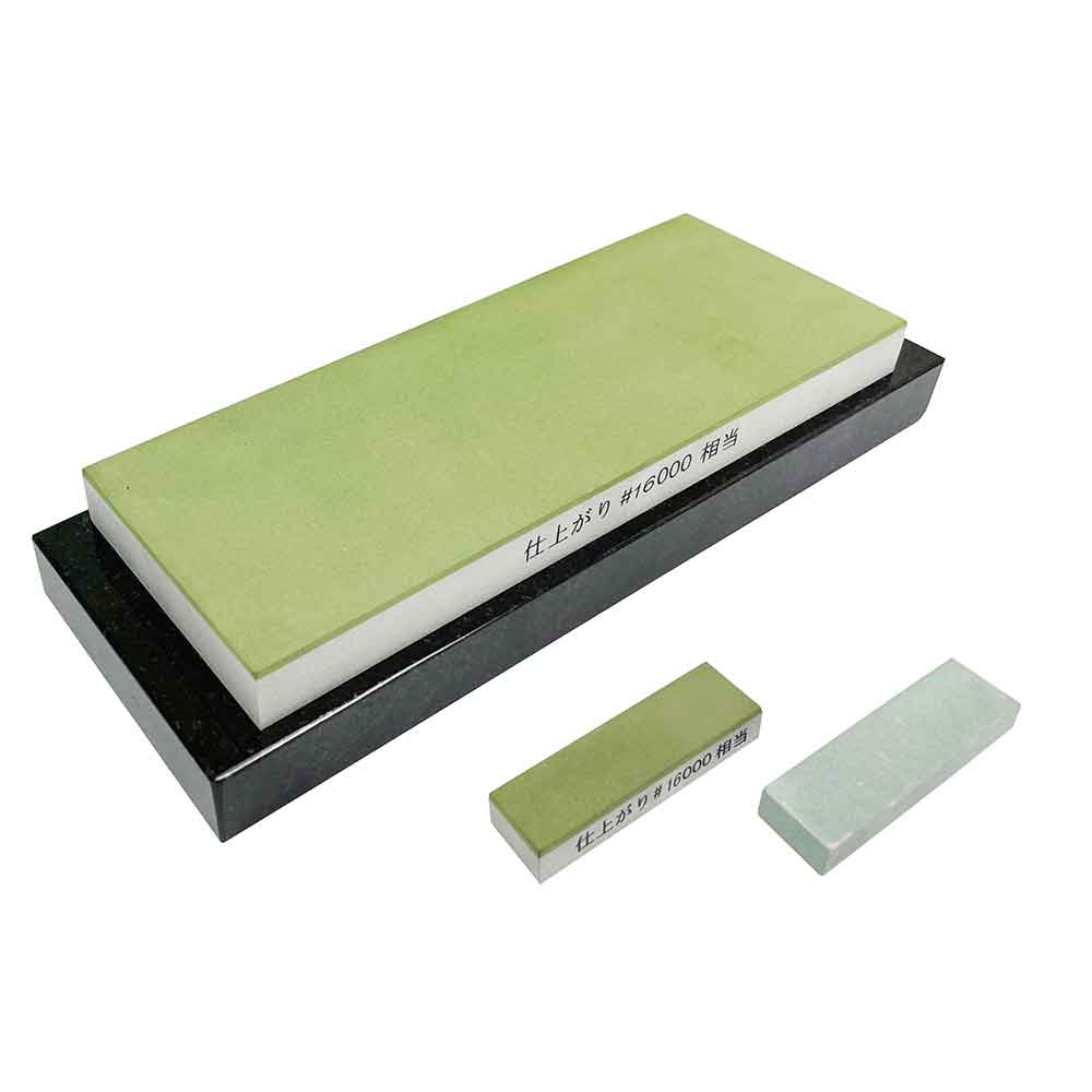 「電着ダイヤの砥石は粗い」とご不満の方にお勧めのダイヤモンド砥石です。 包丁・ナイフ・鑿(のみ)・鉋(かんな)などの刃砥ぎ。 硬い刃物も早く砥げるダイヤモンド砥石です。 御影石を台とすることで重量感と高さがあり、安定した刃砥ぎができます。 ちょっとした刃砥ぎに使えるミニ砥石と、目詰まり時に使用するドレッシング用砥石が付属します。 ●仕上り粒度:16000番相当(超仕上げ用)。 ●砥石サイズ:205X75mm。 ●砥石部分の厚み:約1mm。 ●桐箱入り。 ●付属品:ミニ砥石(同粒度)・ドレッシング砥石・スベリ止め下敷き。