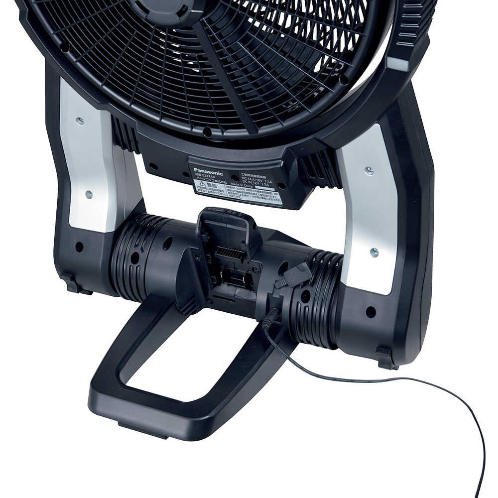 ●折り畳み式で収納時はコンパクトに持ち運びできます。●コードレスで使用場所を選びません。●14.4V/18V電池パック両用、AC電源にも対応しています。●首振り機能付です。●持ち運びに便利なハンドル付です。●電源(V):DC14.4、DC18、単相100~240●消費電力(W)(50/60Hz):16/16●ハネ径(cm):25.5●幅(mm):370●奥行(mm):264●高さ(mm):620●電源コード長さ(m):1.8●首振り:自動(左右各36°)●風量調節:2段階 強/弱モード●標準消費電力料金:0.432円/h●電源:14.4V、18V工具用リチウムイオン充電池●連続使用時間目安:18V5.0Ah 約5時間40分(強)、約7時間50分(弱)、14.4V5.0Ah 約4時間30分(強)、約6時間20分(弱)●風量・風速:2段階(強:190m/分 弱:160m/分)●風向調整:手動(左右各90°)●首振り機能:自動(左右各36°)●スタンド角度:手動(0~90°) 質量3.1kg