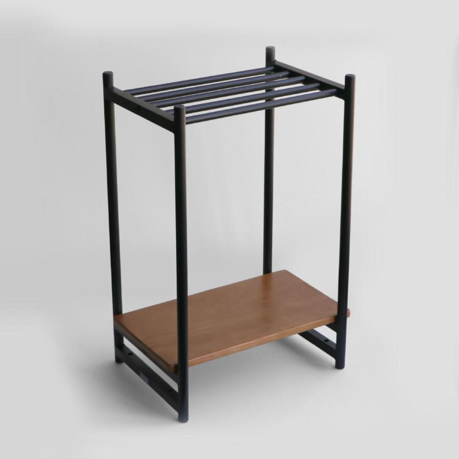 ペット用ハンガーラック。 ●小物が置ける天板付きおやつストックやお散歩バッグなどを置くことができます。 ●コンパクトなのに収納力抜群。 ●通気性の良い棚付き。 ●逆さまに組み立て、2WAYで使える。