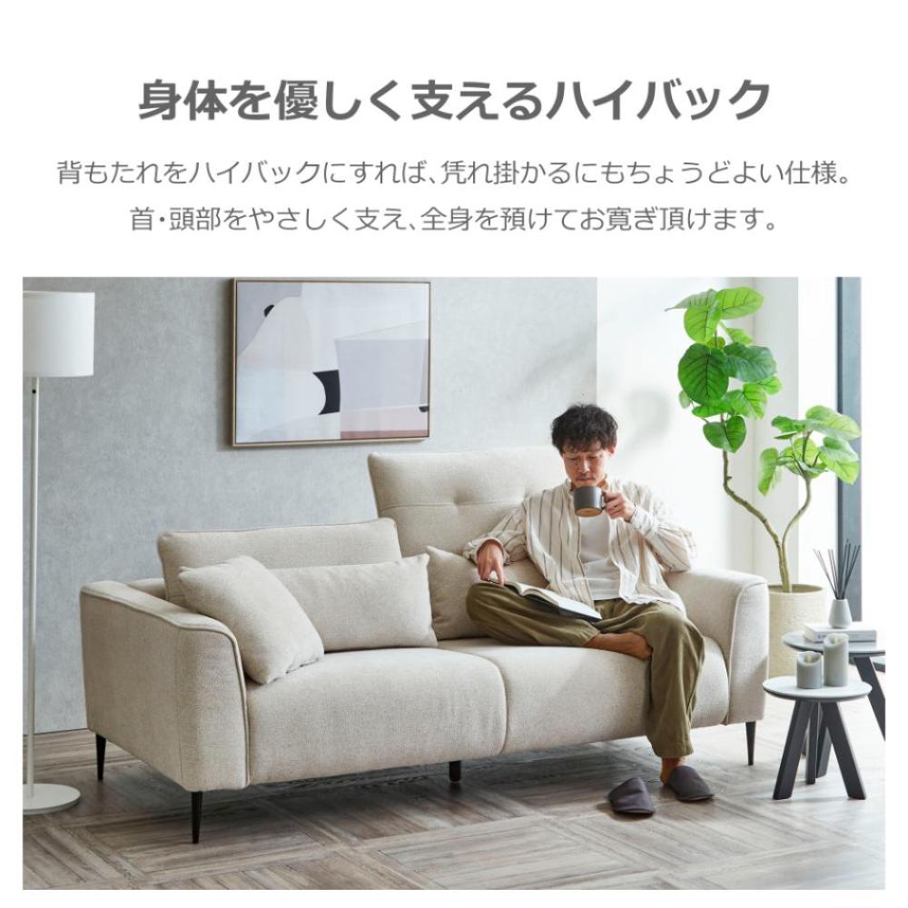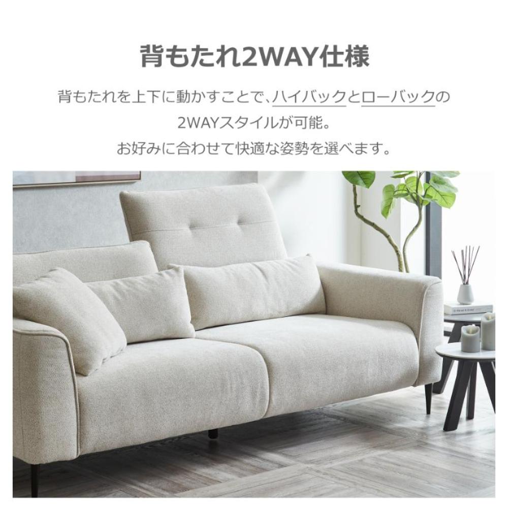 背を上下に動かすことで、ハイバックソファとしても使える2WAYソファ。ランバーサポートやハンドクッションも付いており、お好みの姿勢でおくつろぎいただけます。