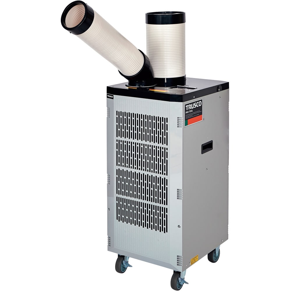 ●冷房能力とコストパフォーマンスが高いスタンダードタイプのスポットエアコンです。●従来機種よりドレン水の排出量が半減しました。●チリやホコリの侵入を防ぐ全閉式モーターを採用し、押しボタンスイッチに防塵カバーを取り付け、より防塵性がアップしました。トラスコのスポットエアコンはプロ仕様!●運転モードは弱冷・強冷の2パターンから選べます。●ウレタンキャスター(75mm)で油の多い作業現場にも最適です。●首振り機能付きで広範囲での送風が可能です。●コンパクト設計で設置場所を選びません。●首振り・風量・電源スイッチに防塵カバーを装着し、ほこりや粉じんが入ることを防ぎます。●ドレン水は4Lタンクに貯水し定期的に捨てて頂くか、ドレンホースを接続し、排水口へ直接排水可能です。●HFC系冷媒R407Cを使用しています。●電源(V):三相200●冷房能力(kW)(50/60Hz):2.2/2.5●消費電力(kW)(50/60Hz):1.33/1.69●口数:1●首振り有無:あり●タンク容量(L):4●本体寸法(mm)幅:400●本体寸法(mm)奥行:430●本体寸法(mm)高さ:845 質量40kg