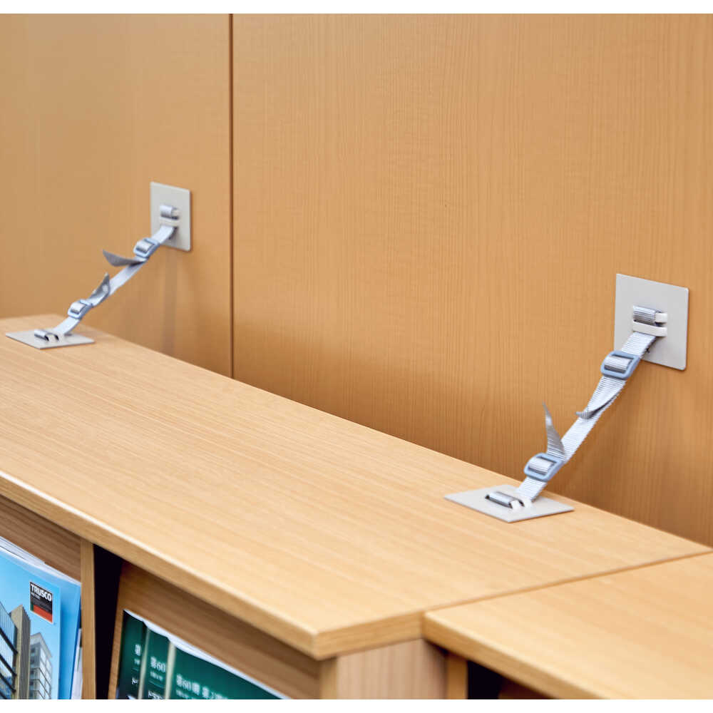 ●強力粘着パッド使用で壁に穴を空けずに設置できます。●窓・障害物など様々なシチュエーションに対応可能です。●幅(mm):90●奥行(mm):935●高さ(mm):10●対象物重量(kg):360/2本●色:グレー●ベルト長さ(mm):25×1160×1.3●袋入数(個):2●取付範囲(mm):壁~800●阪神淡路大震災震度7相当で加振試験を実施・クリア済。●耐荷重:約360kg/1セット 質量380g