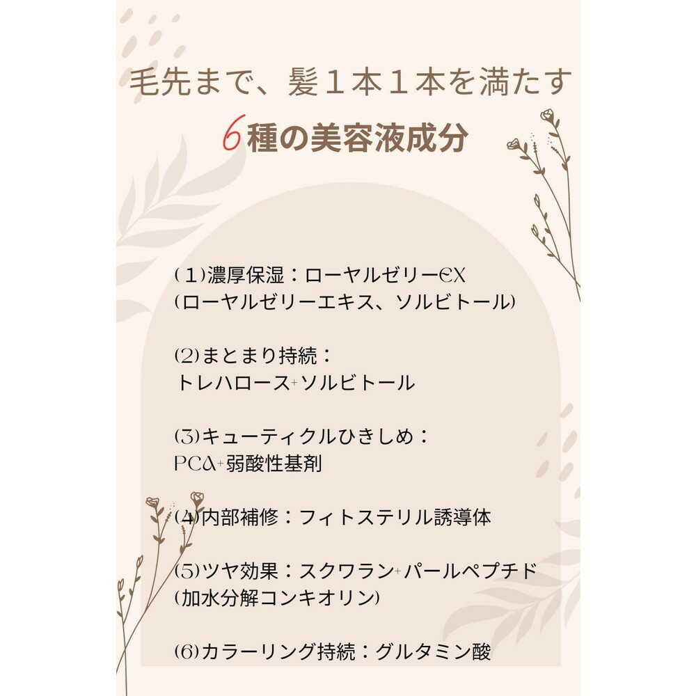 ダメージサーチ機能で、髪のわずかな傷みも探して集中補修。 根もとから傷みやすい毛先まで、同じなめらかな仕上がりに導きます。 毛先まで、髪1本1本を満たす6種の美容液成分配合。特に傷んだ髪用。 洗い流すタイプ。 ヘアマスクつめかえ用 約3回分 上品で心地よい、透明感のあるグレースフローラルの香り