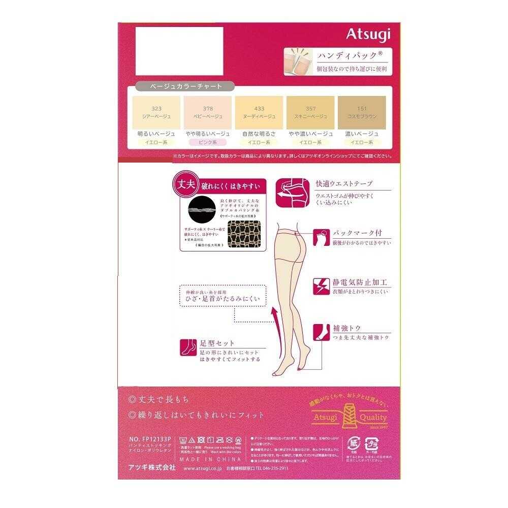 ●丈夫で破れにくくはきやすい。 ●ウエストゴムが伸びやすく、くい込みにくい快適ウエストテープ。 ●前後がわかるバックマーク付。 ●衣類がまとわりつきにくい静電気防止加工。 ●つま先丈夫な補強トウ。 ●足型セット。 ●ひざ・足首がたるみにくい。