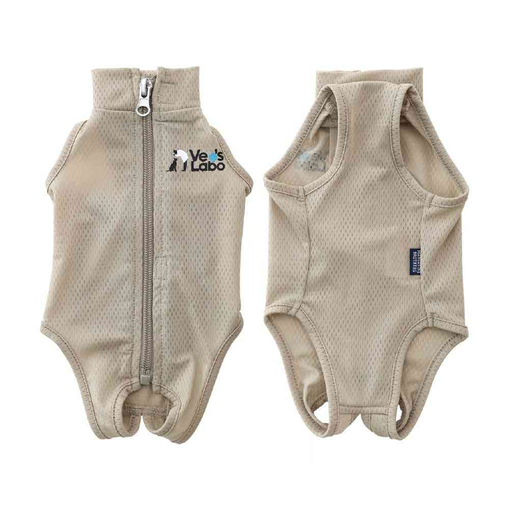 ・術後の傷口の保護としてや、掻きむしり・傷舐めから皮膚を保護するための日常着として、幅広くご愛用いただけるような素材とデザインにこだわりました。 <ベッツウェア の3つのポイント> ■ムレやべたつきを抑える通気性の良いメッシュ素材 生地は伸縮性が高く通気性の良いメッシュ素材を採用しました。 ムレにくく柔らかな肌触りのため、猫ちゃんの皮膚に負担をかけずに患部をしっかり保護でき、手術後も安心してご着用いただけます。 洗濯も可能でいつでも清潔に使用することができます。 ■猫の骨格にや動き合わせて考えた着脱しやすいストレスフリーな設計 背中全面がファスナーになっており、手足からウェアを通すタイプになっています。頭から被るタイプが苦手な猫ちゃんでは特に、着脱にもストレスがかかりません。 背中の2カ所のマジックテープで仮留めが出来るので、ファスナーも上げ下げしやすく着脱が容易です。猫特有の骨格と筋肉を考えて設計しているため、着用していても柔軟な動きを妨げず、ストレスを感じさせません。