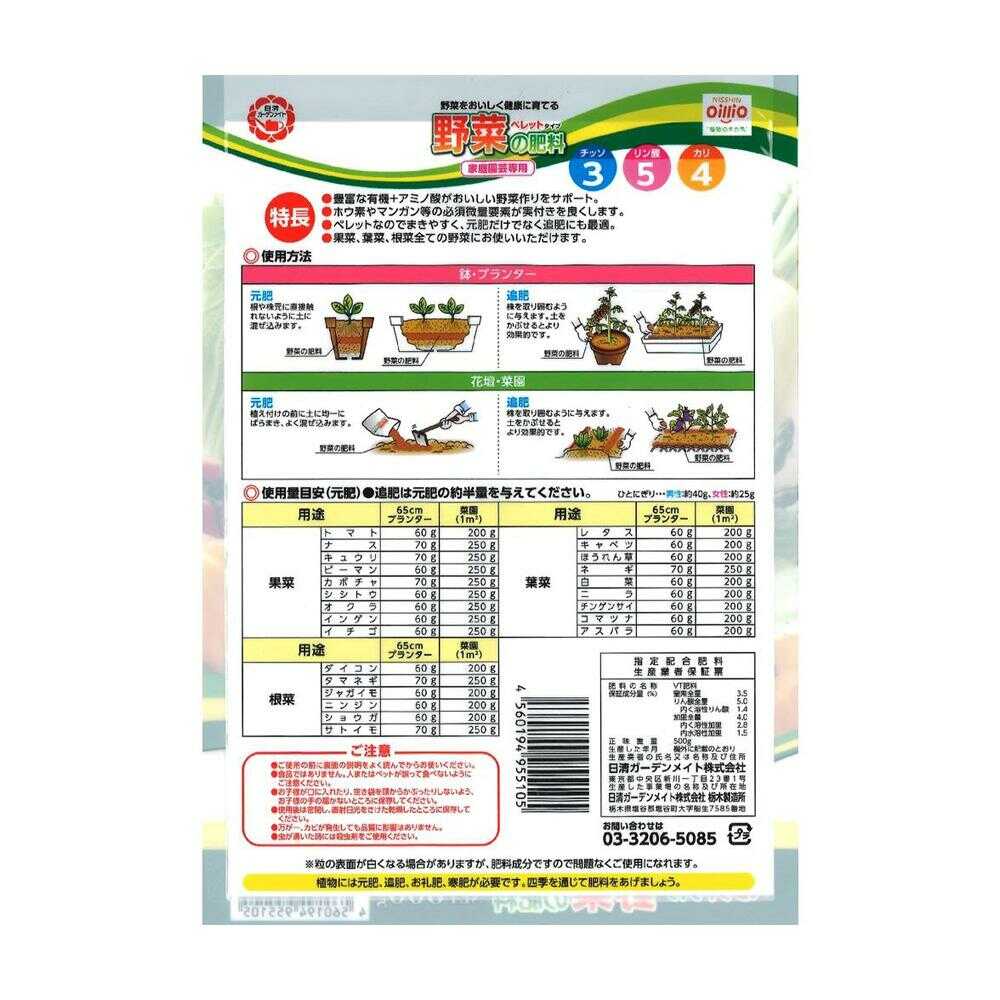 アミノ酸、キチン質、カルシウム等を配合したオールマイティな野菜の肥料です。 アミノ酸が野菜を元気に、キチン質は土壌改良に効果があります。 ペレット状なので撒きやすく、元肥、追肥としていつでもご利用いただけます。