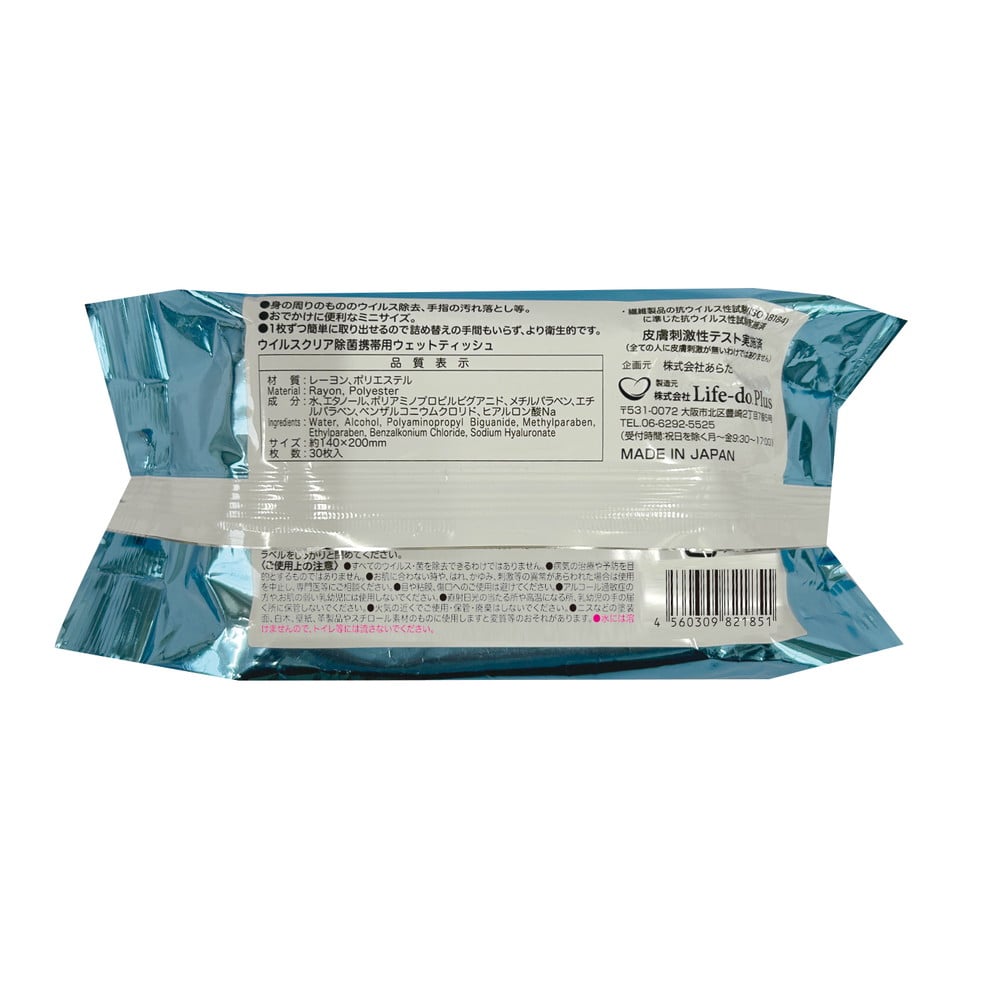 ・身の回りのもののウイルス除去、手指の汚れ落とし等。 ・お出かけに便利なミニサイズ。 ・1枚づつ簡単に取り出せるので詰め替えの手間もいらず、より衛生的です。