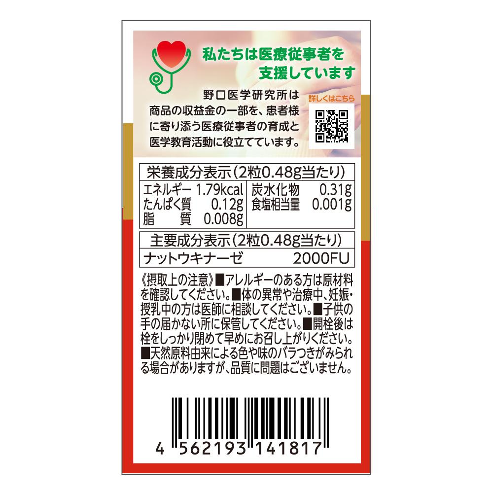 日本の伝統食品「納豆」のネバネバに含まれる酵素が「ナットウキナーゼ」です。 本品は、ナットウキナーゼを2,000FU(1日目安量)配合しました。毎日の元気と健康維持をサポートします。 ※本品に使用しているナットウキナーゼは、ビタミンKを除去しています