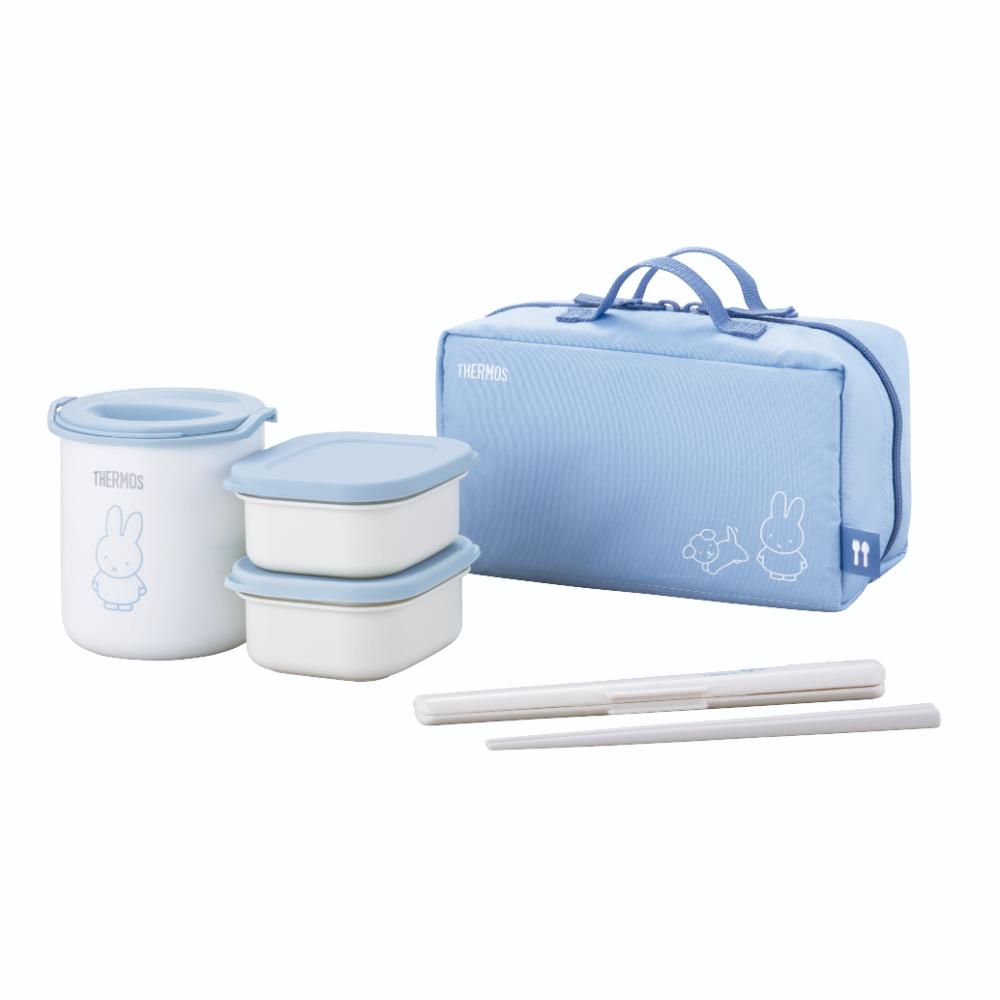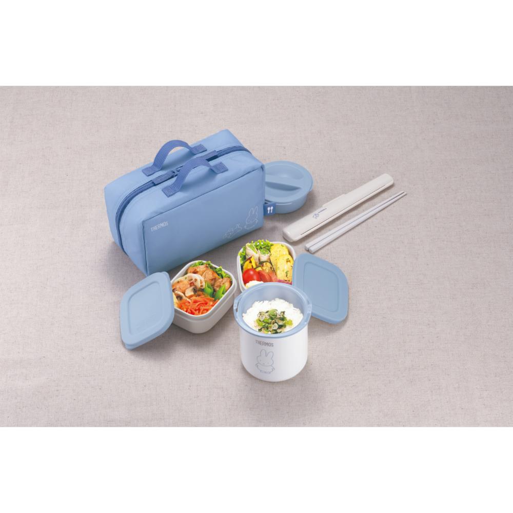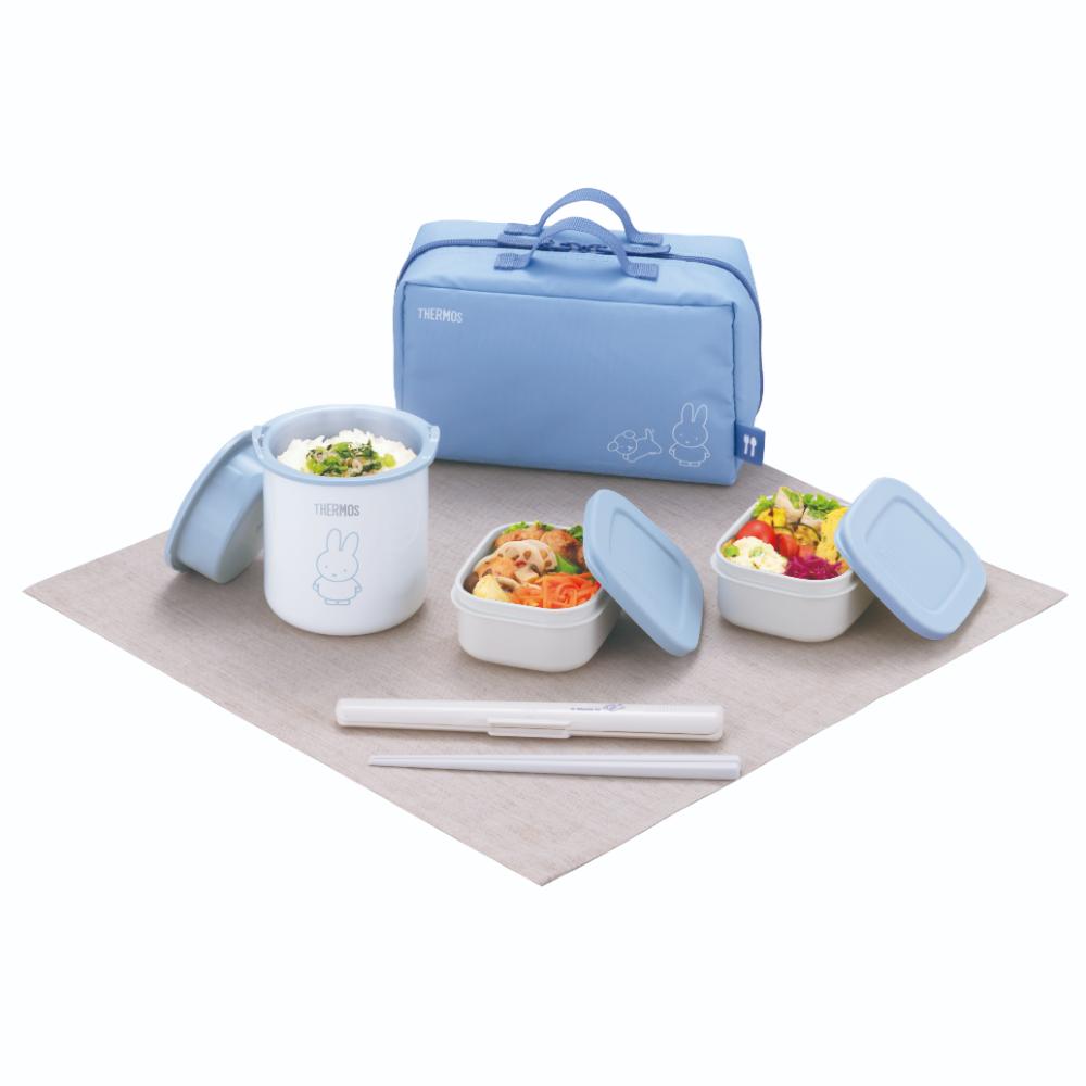 キャラクターデザインの保温弁当箱がリニューアル! ボトルと一緒に使いたくなるデザイン!(同時期発売JNL/JBUと同じデザインテイスト) 「ごはん容器+おかず容器×2個+ハシ/ハシケース」のランチセット ごはん容器用の保温ケースで、ランチタイムまでごはんが温かい
