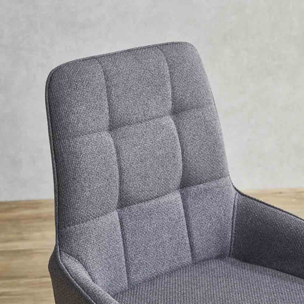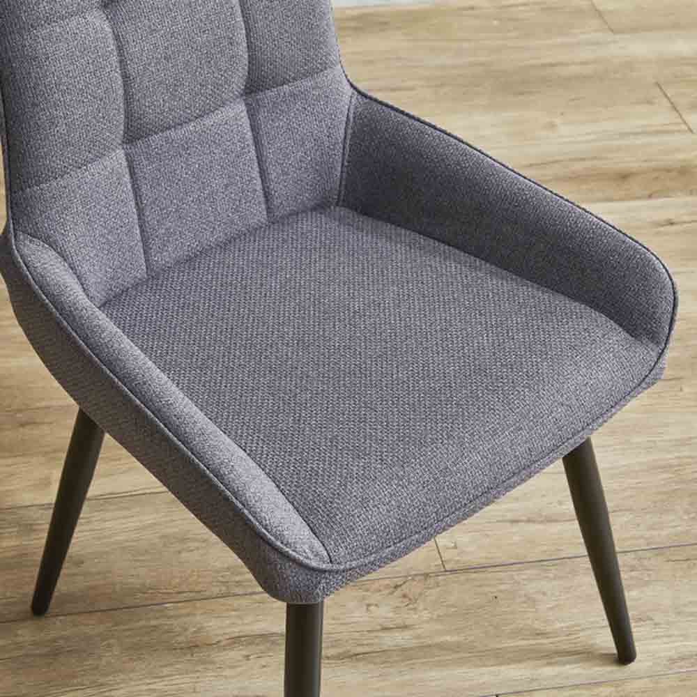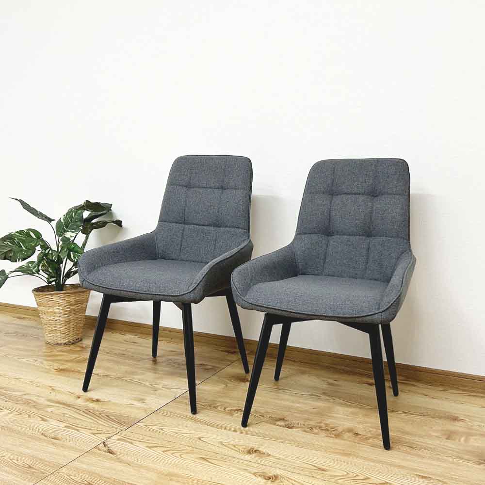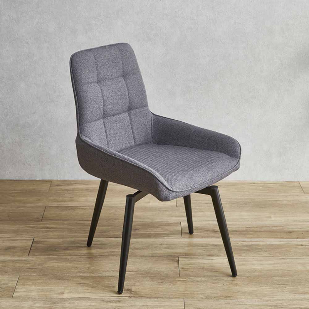 ●生地はファブリック生地でカジュアルな仕上がりで背もたれのブロックステッチが背もたれをしっかりサポートするダイニングチェアー。●脚はブラックスチール脚を採用したオシャレなデザイン。●チェアーは、360°回転式で立ち上がりを楽々サポート。●脚はアジャスター付きでガタツキ調整も可能。●カラー:グレー色。●原産地:中国。