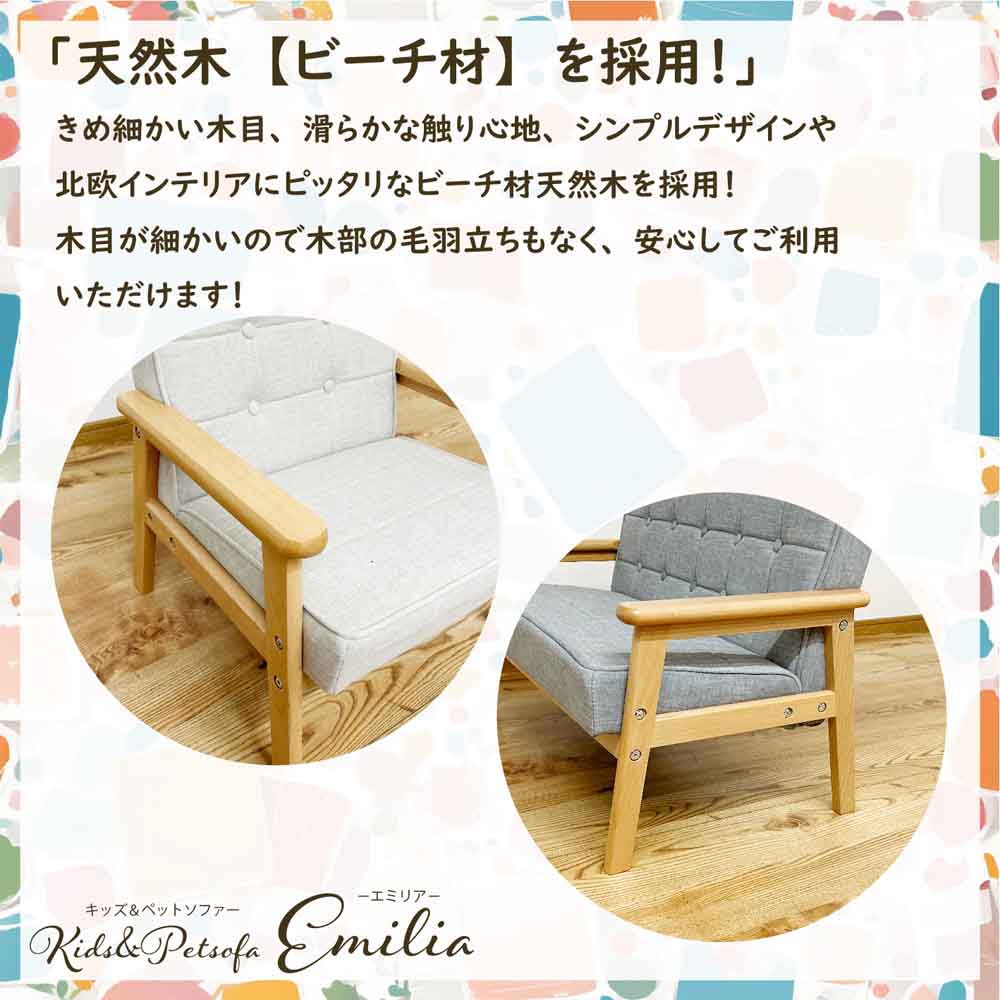 ●木肘タイプソファーを忠実に再現したペットソファー。●木部は、きめ細かい木目のビーチ材を採用。●耐荷重30kgでキッズソファーご利用可能。●ブルー色。