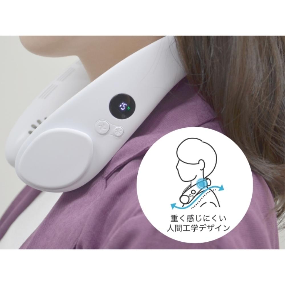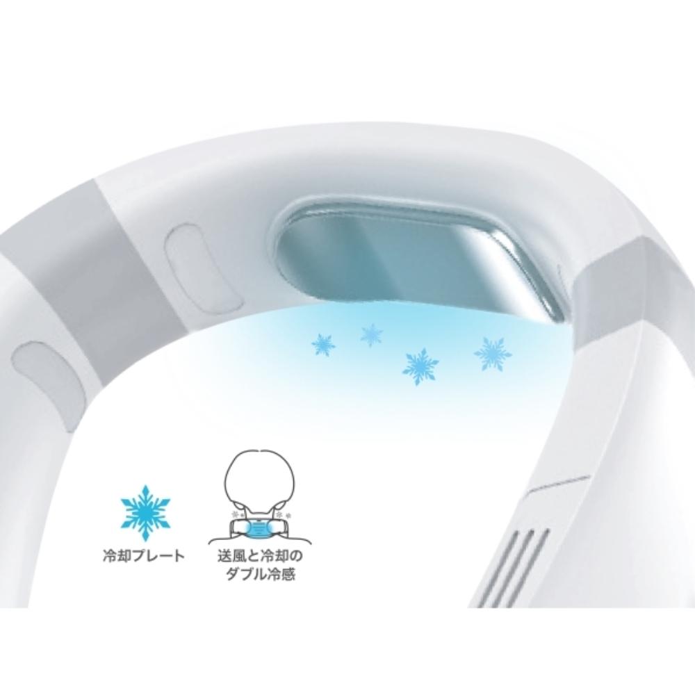 首から上を涼しく冷やすペルチェ素子を使った冷却プレート付き首掛け式冷風ファンです。首周り全体に送風と冷却のダブル冷感!冷却プレートのみ使用可能!_x000D_ 冷却プレートで瞬間冷却!接触冷感!_x000D_ 暑さに合わせて3段階の送風レベルを変更可能!首周り全体に冷たい風を送風します。_x000D_ 長時間使用に最適な、重さを感じにくい人間工学デザインを採用!_x000D_ バッテリー残量も分かるディスプレイ搭載。風量レベルも確認可能です。_x000D_ 通勤、通学はもちろん、暑い日の現場仕事にも。アウトドア、ウォーキング、サイクリングなど、暑い日の外出時のに効果を体感できます。