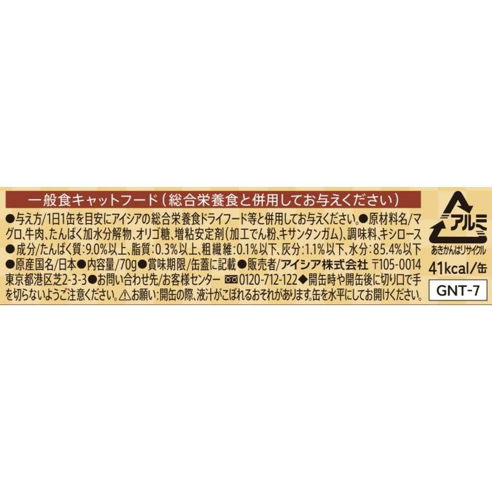 ●マグロ、牛肉、たんぱく加水分解物、オリゴ糖、増粘安定剤(加工でん粉、キサンタンガム)、調味料、キシロース ●たんぱく質:9.0%以上、脂質:0.3%以上、粗繊維:0.1%以下、灰分:1.1%以下、水分:85.4%以下