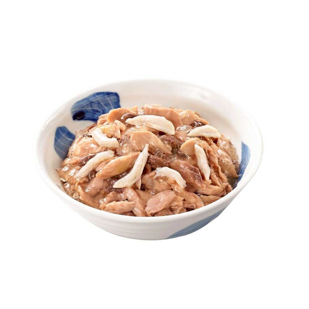 ●魚介類(カツオ、マグロ)、鶏ささみ、オリゴ糖、増粘多糖類、調味料、ビタミンE ●たんぱく質:6.6%以上、脂質:0.2%以上、粗繊維:0.1%以下、灰分:1.8%以下、水分:92.4%以下