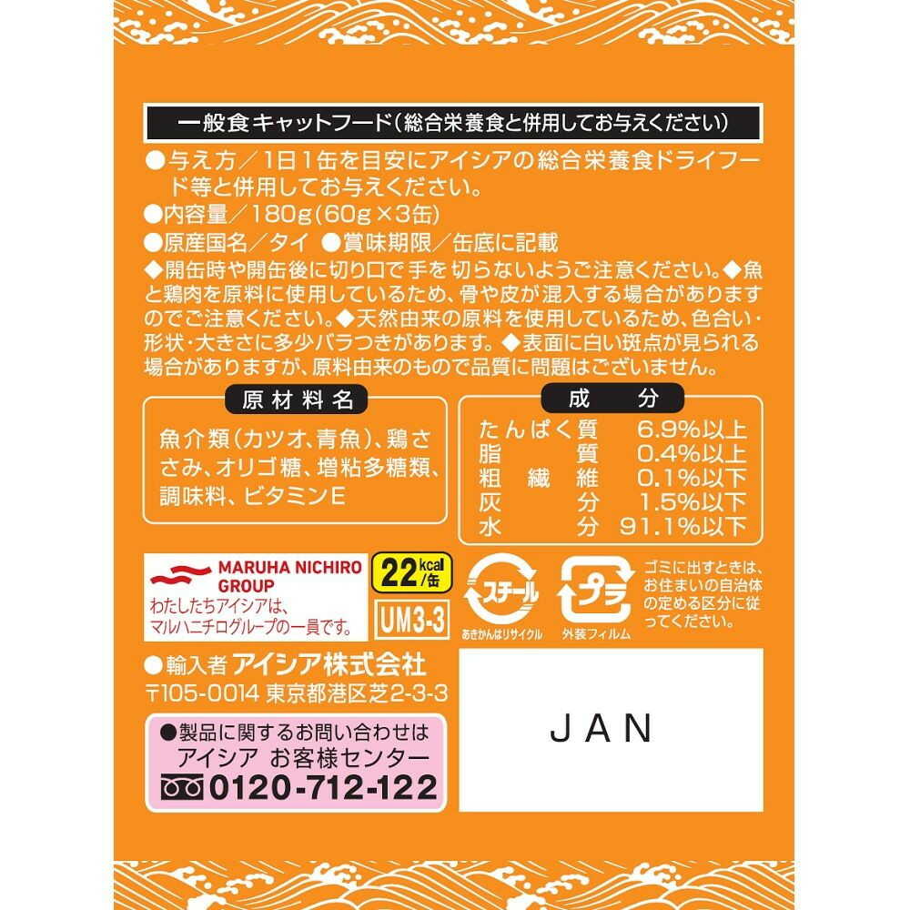 ●開缶時や開缶後に手を切らないようご注意ください ●1日1缶を目安に、アイシアの総合栄養食ドライフード等と併用してお与えください。