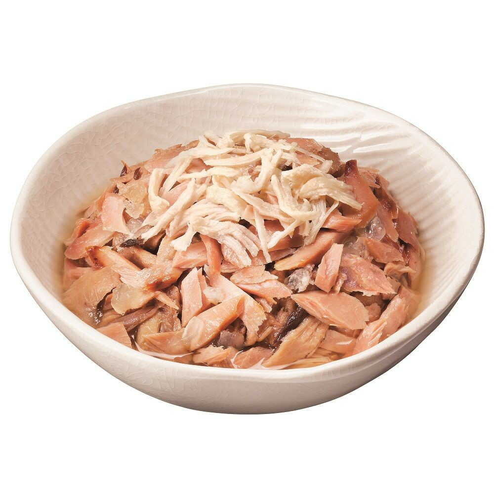 ●魚介類(カツオ、青魚)、鶏ささみ、オリゴ糖、増粘多糖類、調味料、ビタミンE ●たんぱく質:6.9%以上、脂質:0.4%以上、粗繊維:0.1%以下、灰分:1.5%以下、水分:91.1%以下