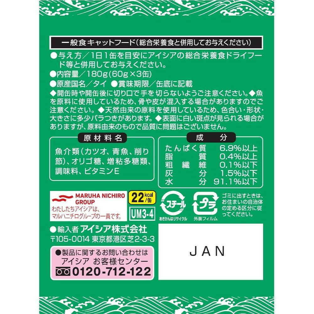 ●開缶時や開缶後に手を切らないようご注意ください ●1日1缶を目安に、アイシアの総合栄養食ドライフード等と併用してお与えください。