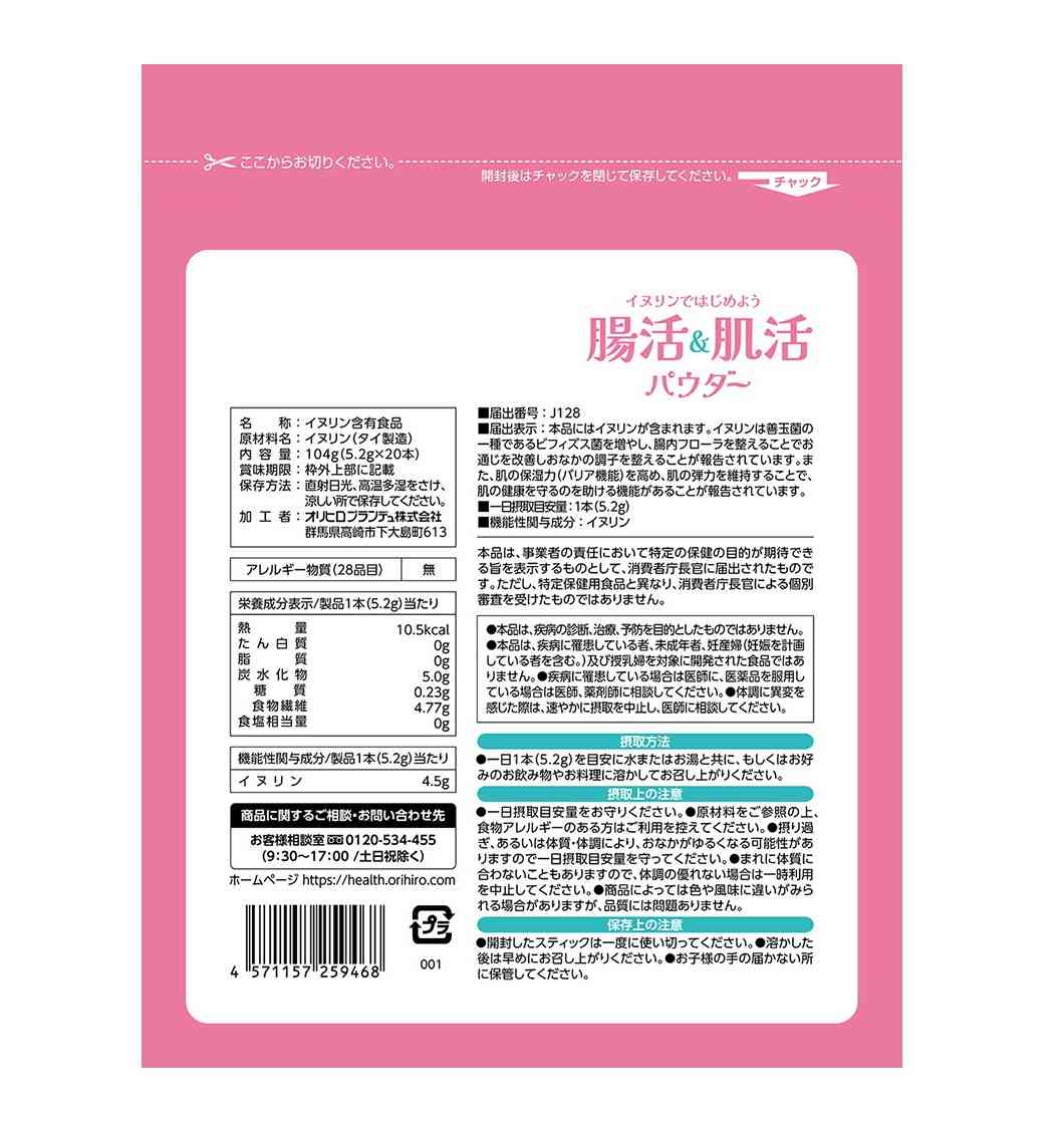 イヌリン、粉末、分包、スティック、腸、肌