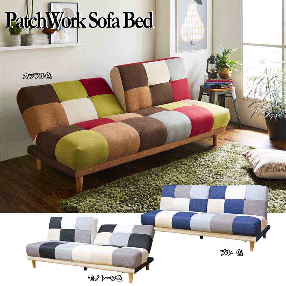 ソファ ソファーベッド ベッド リクライニング 背もたれ2WAY パッチワーク カラフル