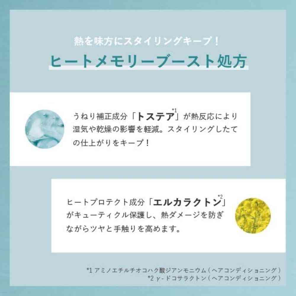 朝のスタイリング前におすすめの、熱を味方に「ダメージケア×スタイリングキープ」を叶えるヘアトリートメント。 毎日のドライヤーやアイロン・コテの熱、ヘアカラーやブリーチなどによって積み重なる髪のダメージを集中的にケア。 清らかでみずみずしいミュゲ&サボンの香り。 エアリーコントロール ふんわりと空気をまとったような軽やかさで、ナチュラルで扱いやすい髪に。 動きをつけたいレイヤースタイルや、柔らかさを出したい日にもぴったりの仕上がりで、カールアイロンでスタイリングをする方に特におすすめ。