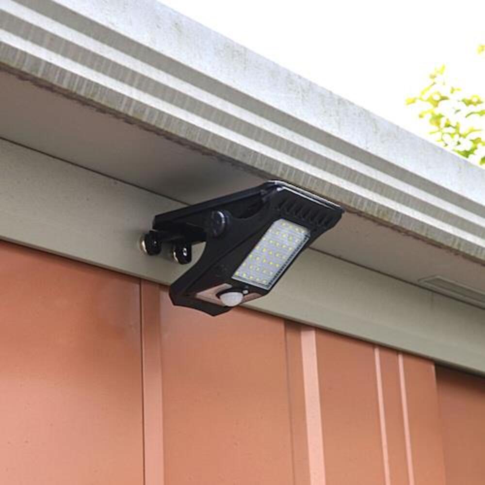 ●クリップみたいに挟むだけの超簡単設置。電池不要でキャンプでも家でも大活躍。 ●設置に工具が不要なので付け替えもラクラク。必要な時、必要な場所へ明かりを持ち運べる。 ●ソーラーパネルとLEDが表裏構造なので、窓際で充電して、そのまま夜の室内を照らすことも可能。 ●灯りが欲しい場所にはさんですぐ発光!物干し竿や手すりなどに簡単取り付け ●ソーラーパネル一体型を実現したスタイリッシュなクリップ式センサーライト! ●昼間はソーラーパネルで太陽光を効率的に充電!夜間は人感センサーで自動発光 ●明暗と人感の二つのセンサーで夜間に人が通ると強力に自動発光! ●月々の電気代0円!電源不要の省エネ設計!取付も簡単。 ●IP65相当という高い防塵防水性能を実現。雨やホコリにも強い安心の防水設計。