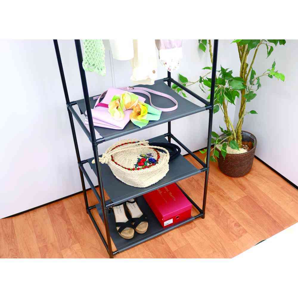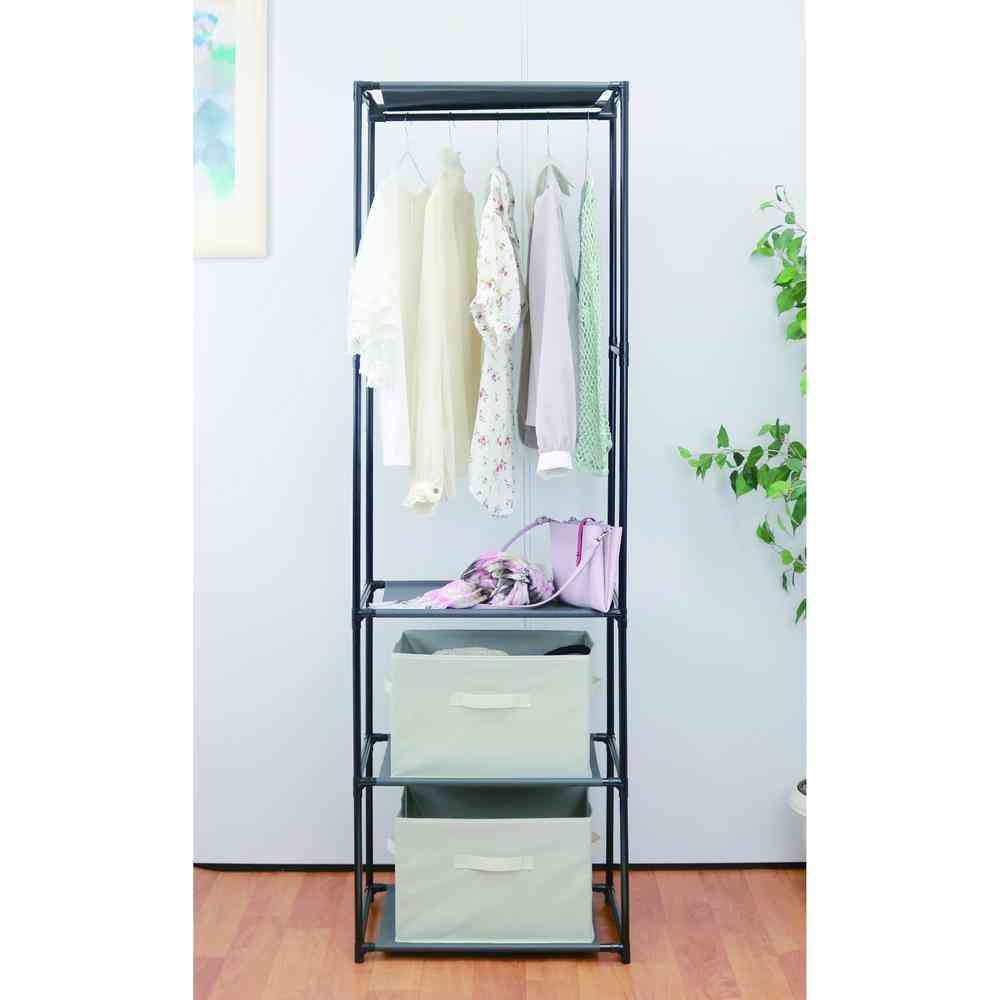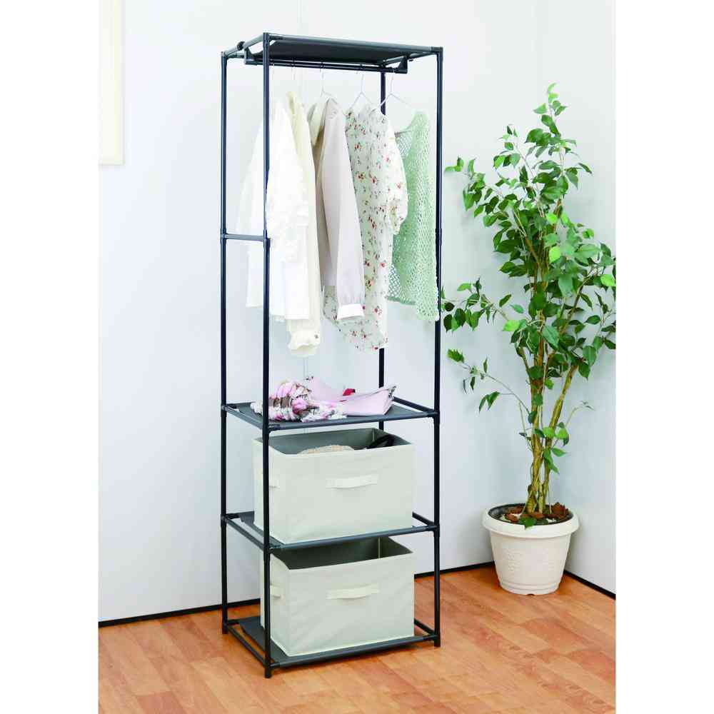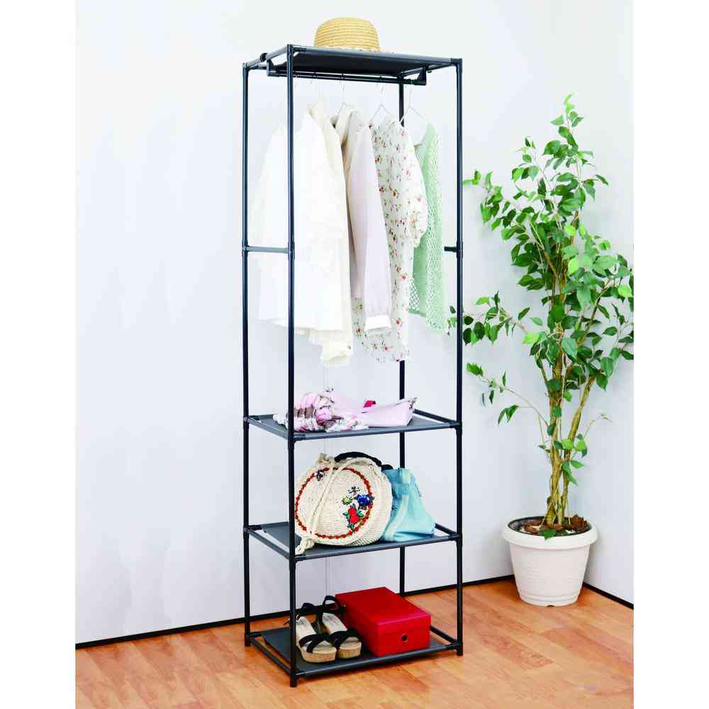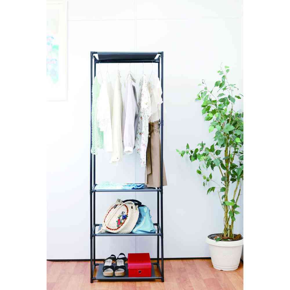 縦長タイプの収納シンプルハンガーラック。 お部屋のすき間にピッタリ。 【耐荷重】全体で10kg(ハンガー部:4kg、棚一段辺り:1.5kg)