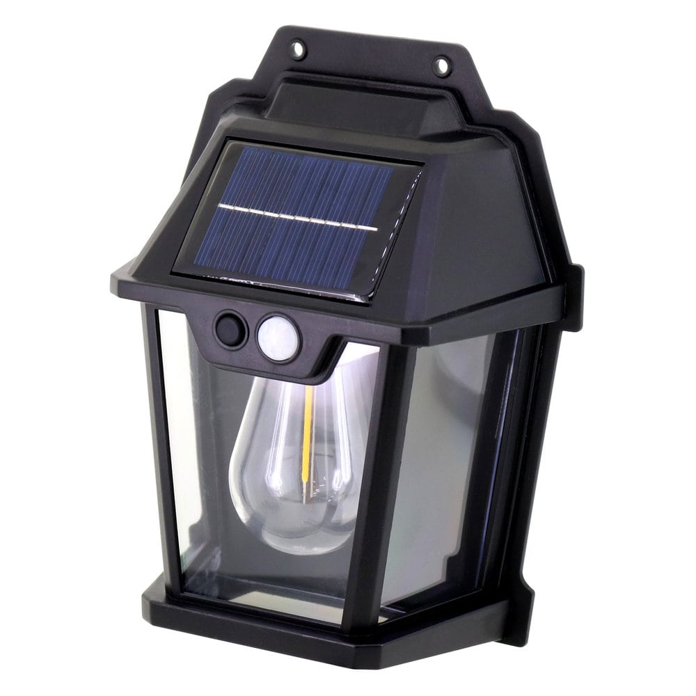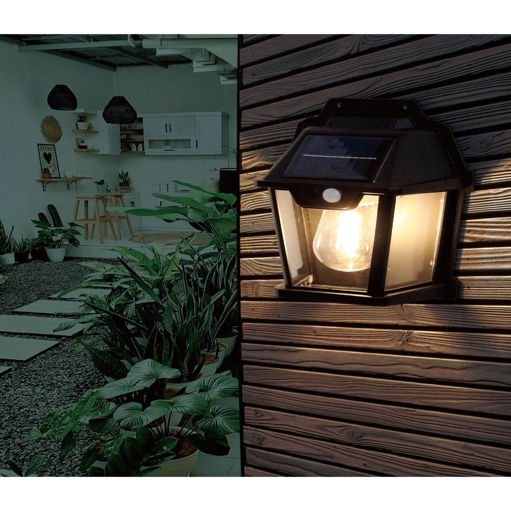 アンティークな雰囲気あるフィラメント電球LED。電池不要、ソーラー充電ライト。3つのモード搭載、人感モード・人感弱点灯モード・常時点灯モード。【仕様】[付属品]粘着シール×1、固定用ネジ×2、ボードアンカー×2[光束]最大約80ルーメン(強点灯)[連続点灯時間]約12時間 ※太陽光にて約10時間充電(晴天時)[センサー反応距離]約3~5m/110度[センサー反応時の強点灯時間]約20秒