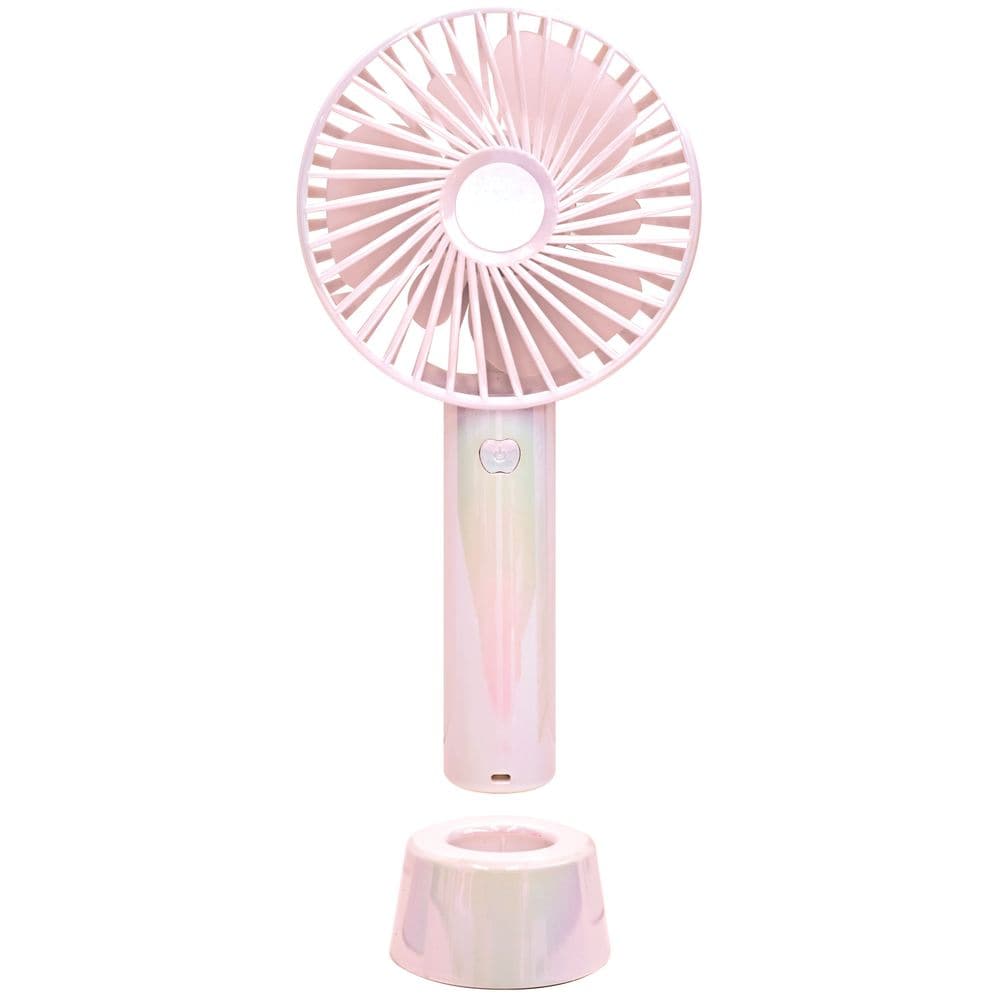 大小6枚羽根の静音&パワフルファン!美しいオーロラカラー!USB充電式ハンディファン。スタント付きで卓上でもハンディでも使用可能です。裏面の突起により転がらず横置きもできます。風量は3段階(弱、中、強)で調整ができます。大小の6枚羽によってパワフルな風から静音の風まで使用可能です。【仕様】付属品:USBケーブル(USB?Type-C)、スタンド、ハンドストラップ●充電時間:6時間●連続使用時間:弱:4.5時間、中:3時間、強:2時間●内臓バッテリー:2000mAh リチウムイオン電池●入力:DC5V/0.5~1A