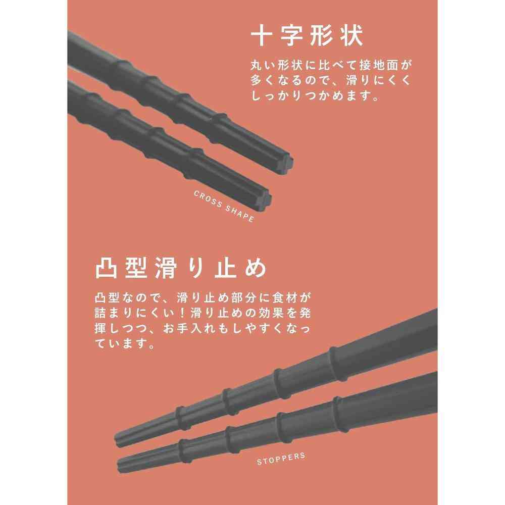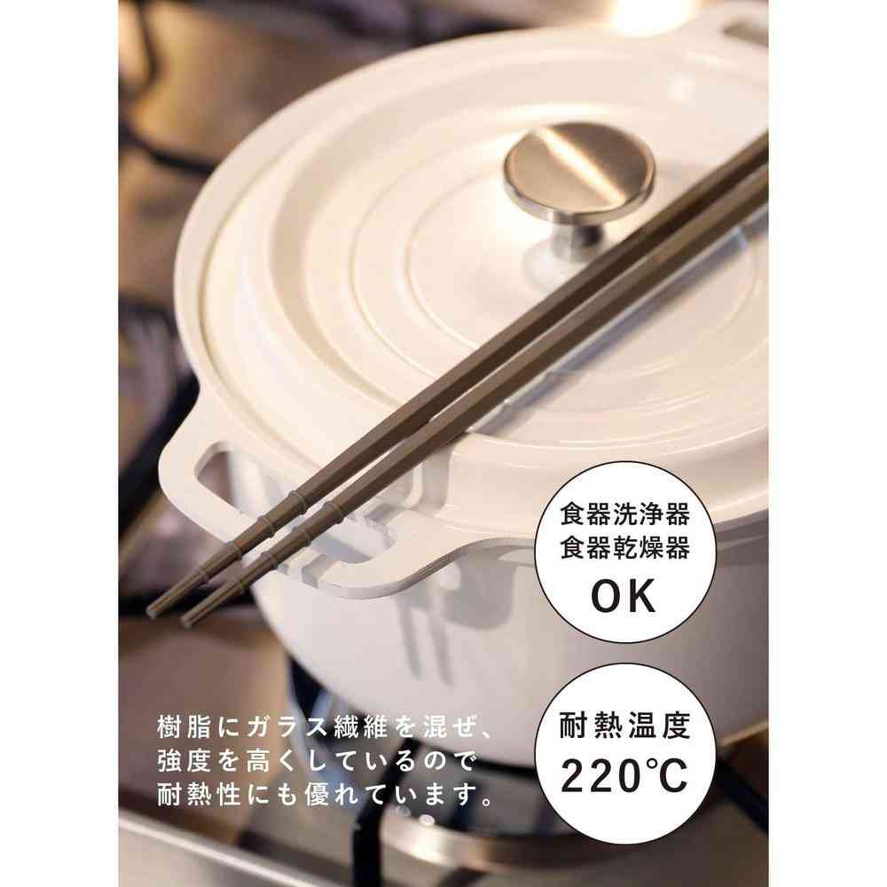 盛り付けしやすく、つかみやすい菜箸です。 十字形状の箸先と凸型すべり止めで食材をしっかり掴めるので、盛り付け・調理・取り箸など、様々なシーンで活躍します。 樹脂にガラス繊維を混ぜており、強度・耐熱性に優れています。 ・耐熱温度:220度 ・食器洗浄機:使用可 ・食器乾燥機:使用可 ・抗菌加工(抗菌性試験 JIS Z 2801)