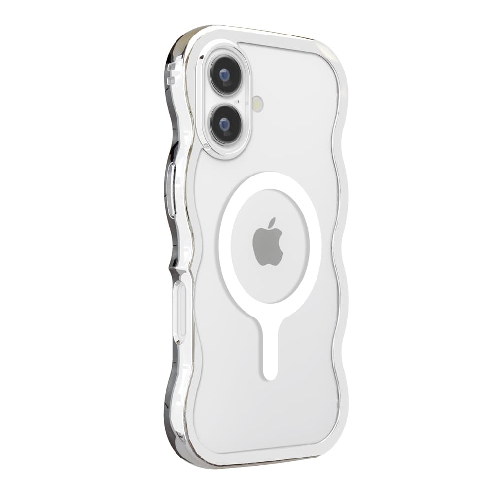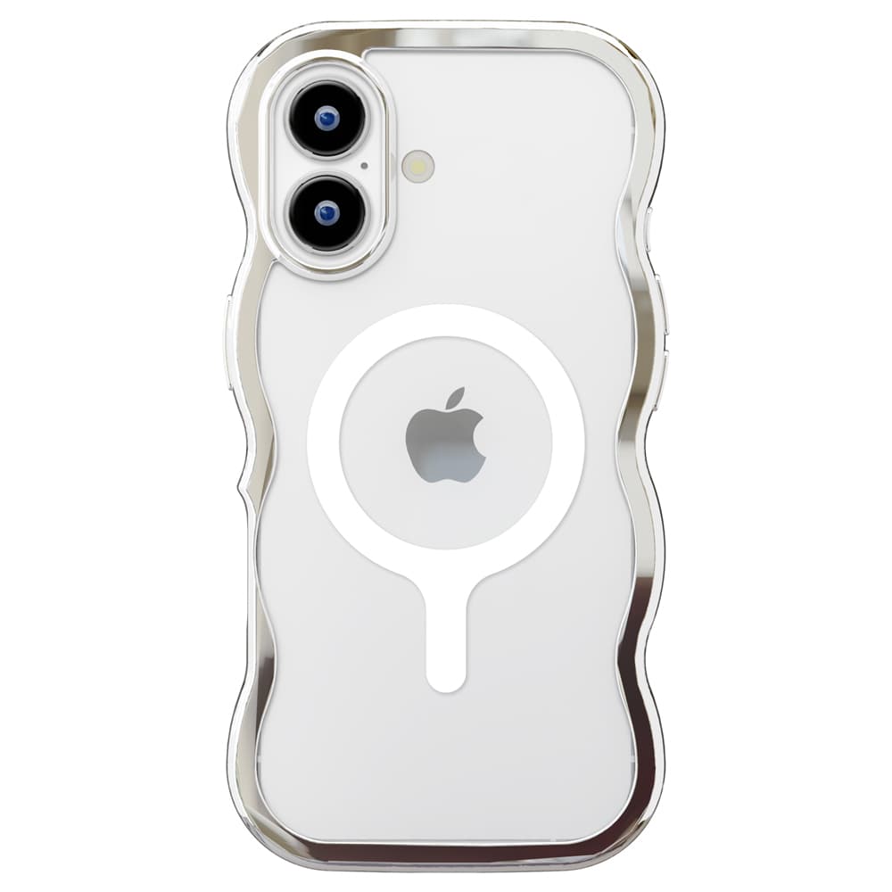 「PG-25AMW03SV」は、やわらかな波打つデザインが可愛らしい各種MagSafeアクセサリーに対応したiPhone 17用 ウェーブケースです。 ケース背面はクリアタイプでiPhone本体の美しさを最大限に活かします。 耐久性のあるポリカーボネイトとしなやかなTPUを組み合わせたハイブリッド設計で端末本体をしっかり保護します。 マグネットリング搭載でMagSafeアクセサリーをピタッと簡単装着。 お手持ちのストラップをつけて落下を防げるストラップホール付き。