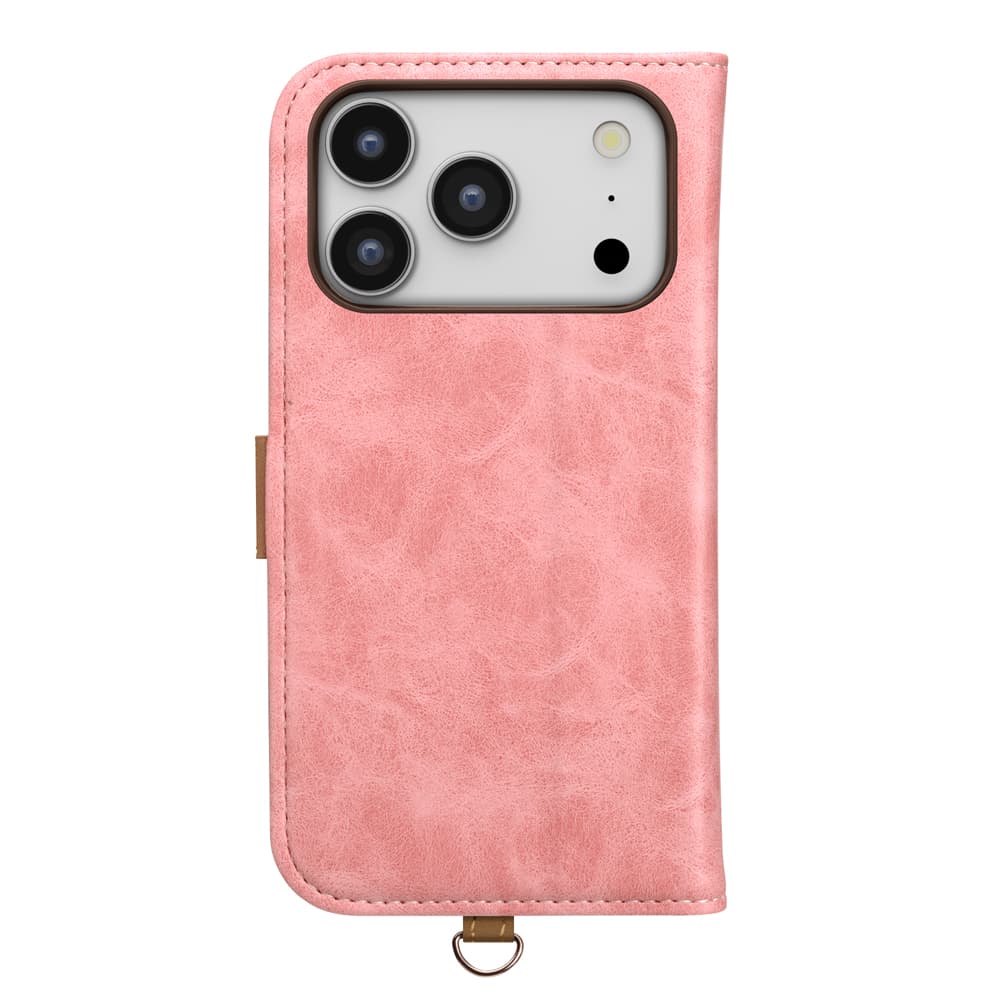 「PG-25BFP03PK」は、風合いの良い上質なPUレザー素材を使用したiPhone 17 Pro用 フリップカバーです。 上品で手触りのいいPUレザーは、シンプルなiPhoneのデザインとぴったりマッチします。 特許取得済みのマグネットロックで、ラクラクカバーを開閉する事が可能。 便利な横スタンド機能で動画の視聴をお楽しみ頂けます。 通勤通学やお買い物に便利な2つのカードポケット・ショルダーストラップを取り付けするのに最適なストラップホール付き。 カバーを付けたままワイヤレス充電が可能です。