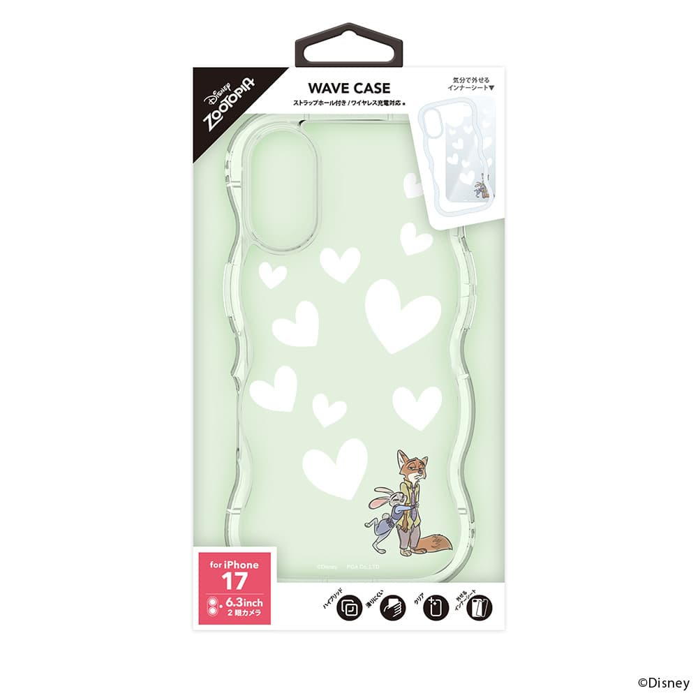 「PG-D25AWH03ZTP」は、ディズニーキャラクターデザインの着せ替えシートがセットになったiPhone 17用 ウェーブケースです。 iPhone本体の色を活かす透明タイプの着せ替えシートは気分に合わせて取り外しが可能です。 波打つデザインが可愛らしいウェーブケースは、耐久性のあるポリカーボネイトとしなやかなTPUを組み合わせたハイブリッド設計で端末本体をしっかり保護します。 ケースを付けたままワイヤレス充電が可能です。 お手持ちのストラップをつけて落下を防げるストラップホール付き。