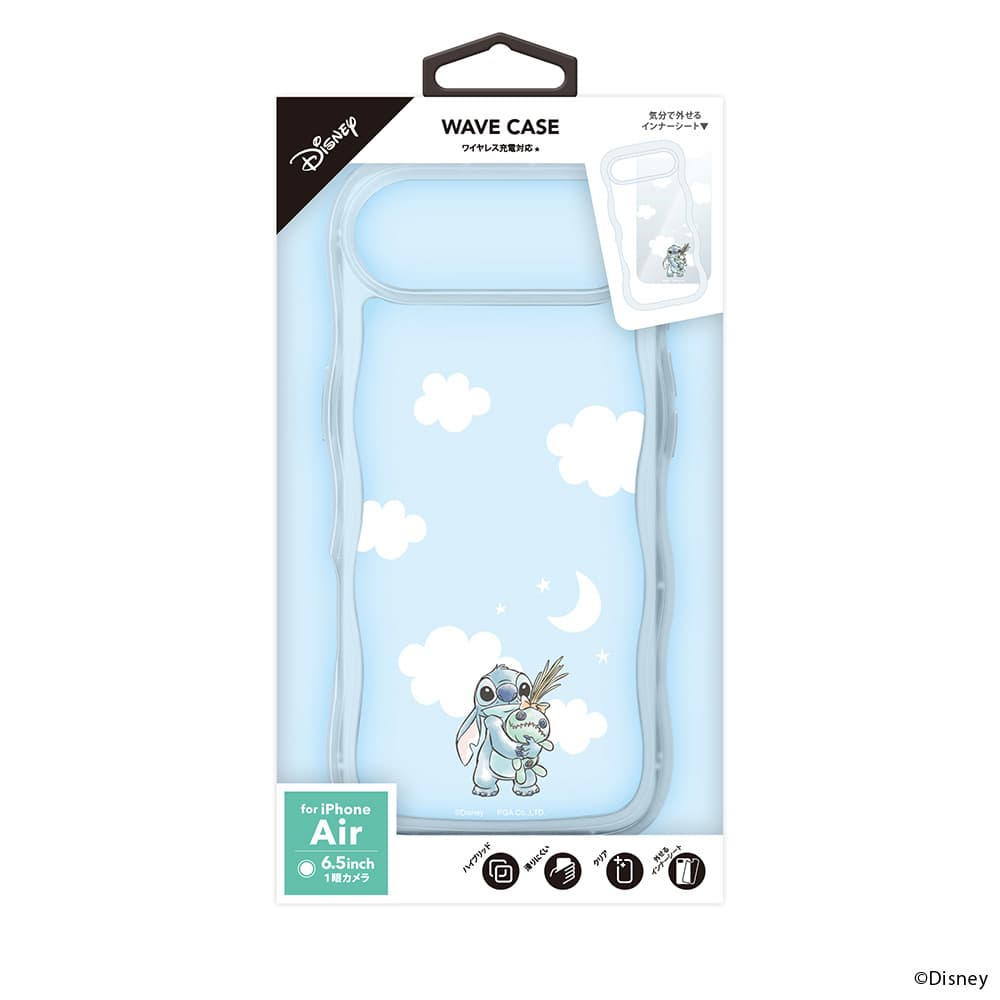 「PG-D25CWH01STI」は、ディズニーキャラクターデザインの着せ替えシートがセットになったiPhone Air用 ウェーブケースです。 iPhone本体の色を活かす透明タイプの着せ替えシートは気分に合わせて取り外しが可能です。 波打つデザインが可愛らしいウェーブケースは、耐久性のあるポリカーボネイトとしなやかなTPUを組み合わせたハイブリッド設計で端末本体をしっかり保護します。 ケースを付けたままワイヤレス充電が可能です。