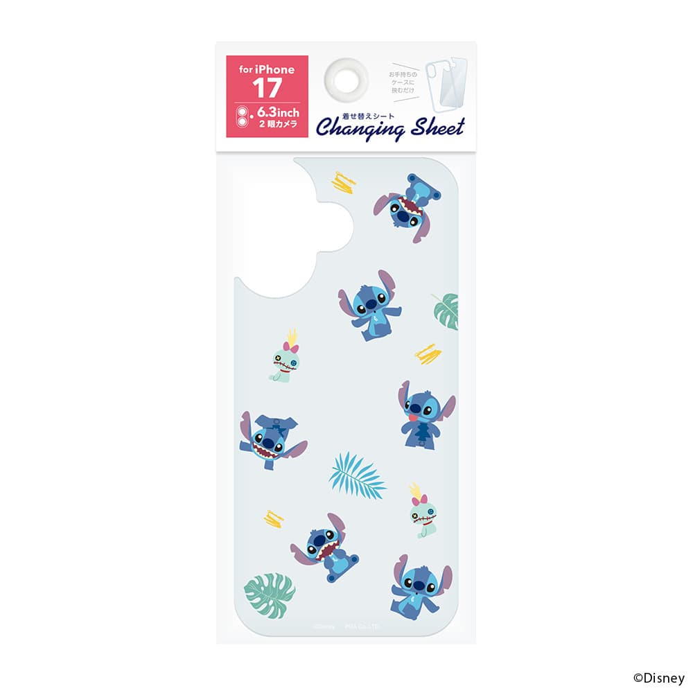 「PG-DSH25A05STI」は、背面が透明のケースに挟んでアレンジが楽しめるディズニーキャラクターデザインのiPhone 17用 着せ替えシートです。 iPhone本体の色を活かす透明タイプ。 高透明なPET素材のシートは、丸まったり・折れ曲がったりしない適度な厚さ。 シートサイズはiPhone本体よりも少し小さめ設計で、ケースの中でズレにくい。