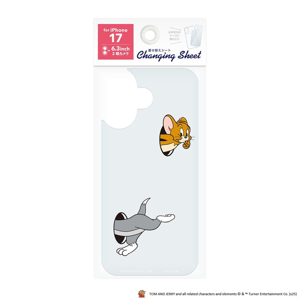 「PG-WSH25A02TAJ」は、背面が透明のケースに挟んでアレンジが楽しめる「トムとジェリー」デザインのiPhone 17用 着せ替えシートです。 iPhone本体の色を活かす透明タイプ。 高透明なPET素材のシートは、丸まったり・折れ曲がったりしない適度な厚さ。 シートサイズはiPhone本体よりも少し小さめ設計で、ケースの中でズレにくい。