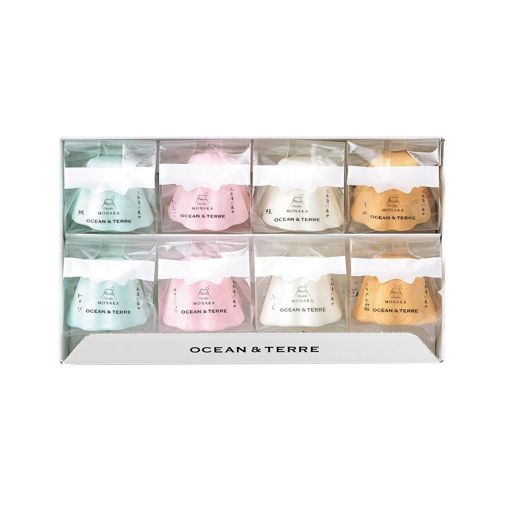 日本は幾千もの美しい風景に恵まれ、幾万もの彩り豊かな景色を見せてくれます。その中の1つ”富士山”は、世界文化遺産に登録され、「日本の象徴」「開運の象徴」とされています。四季により、自然が織り成す富士山の山容を思い浮かべながら…”富士山style最中”をお楽しみください。【富士山style お茶漬け最中】最中の「香ばしい味」「もちもち食感」と、風味豊かで美味しいお茶漬けをご賞味ください。最中(鯛茶漬け)8.7g×1、最中(たらこ茶漬け)8.7g×1、最中(鮭茶漬け)9.7g×1、最中(梅茶漬け)8.7g×1、最中(わさび茶漬け)8.7g×1、最中(ゆずこしょう茶漬け)8.7g×1、最中(ふぐ茶漬け)8.7g×1、最中(ちりめん山椒茶漬け)8.7g×1※もち米 100%(国産)最中種