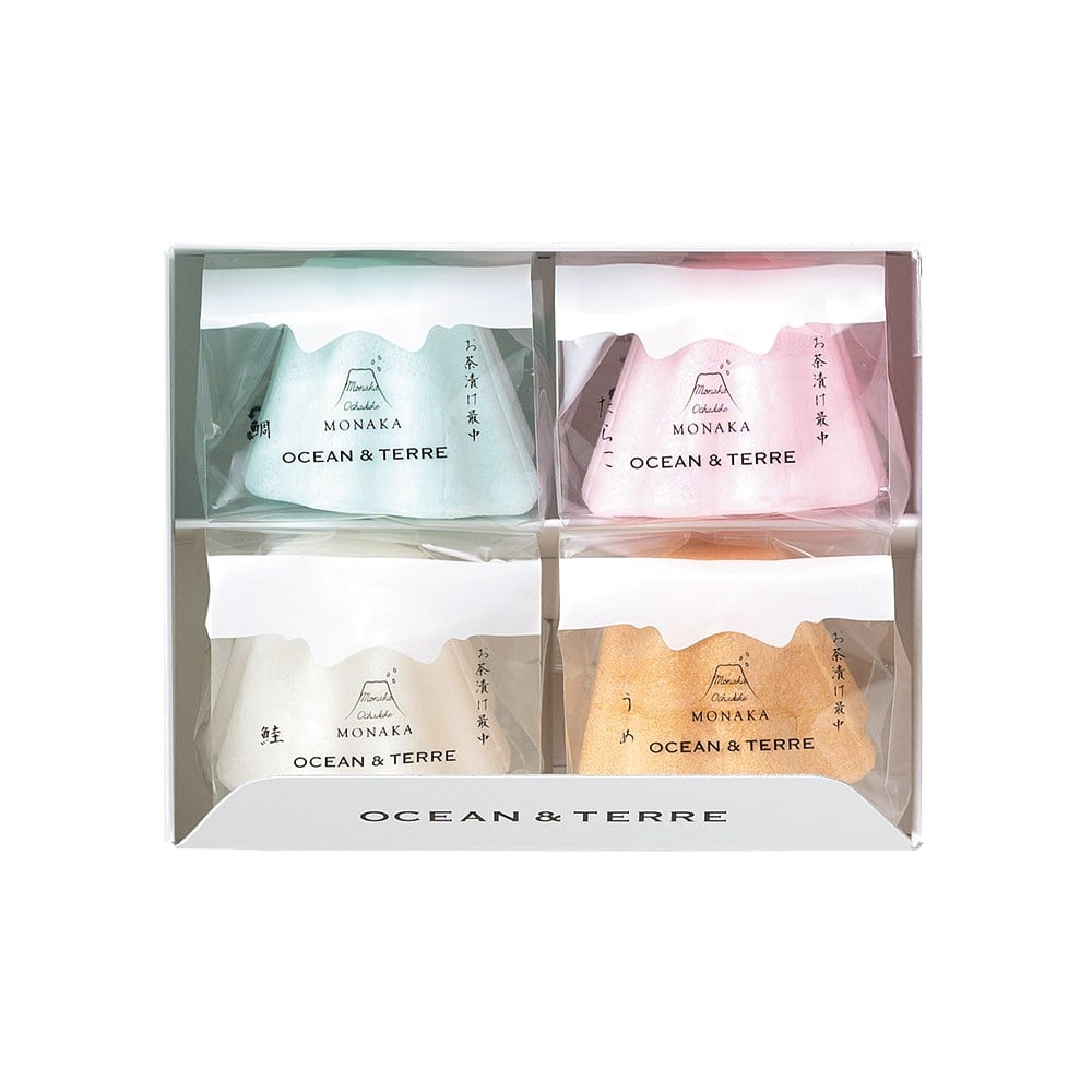 最中(鯛茶漬け)8.7g×1、最中(たらこ茶漬け)8.7g×1、最中(鮭茶漬け)9.7g×1、最中(梅茶漬け)8.7g×1、最中(だし味噌汁の素 合わせ)10.7g×2、最中(だし味噌汁の素 赤)10.7g×2※もち米 100%(国産) 最中種日本は幾千もの美しい風景に恵まれ、幾万もの彩り豊かな景色を見せてくれます。その中の1つ"富士山"は、世界文化遺産に登録され、「日本の象徴」「開運の象徴」とされています。四季により、自然が織り成す富士山の山容を思い浮かべながら…"富士山style最中"をお楽しみください。【富士山style お茶漬け最中】最中の「香ばしい味」「もちもち食感」と、風味豊かで美味しいお茶漬けをご賞味ください。
