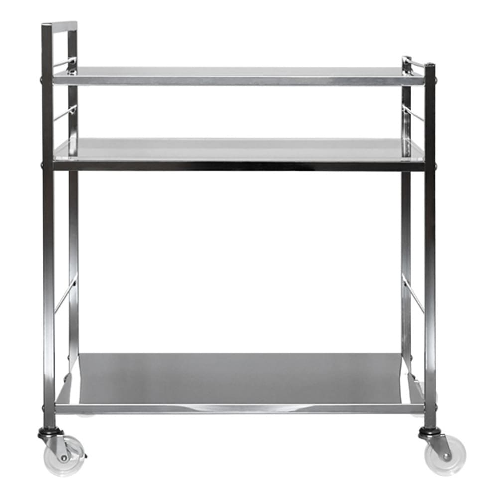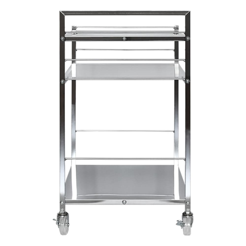 日本製のキッチンワゴンです。 ステンレス製だからお手入れしやすいのはもちろん、見た目にも美しく、機能性・デザインともに優れています。 ステンレス素材とマッチした透明のキャスターは高級感と清潔感を演出します。 付属品として、キャスター×4個(内、2個はストッパー付き)がついてきます。
