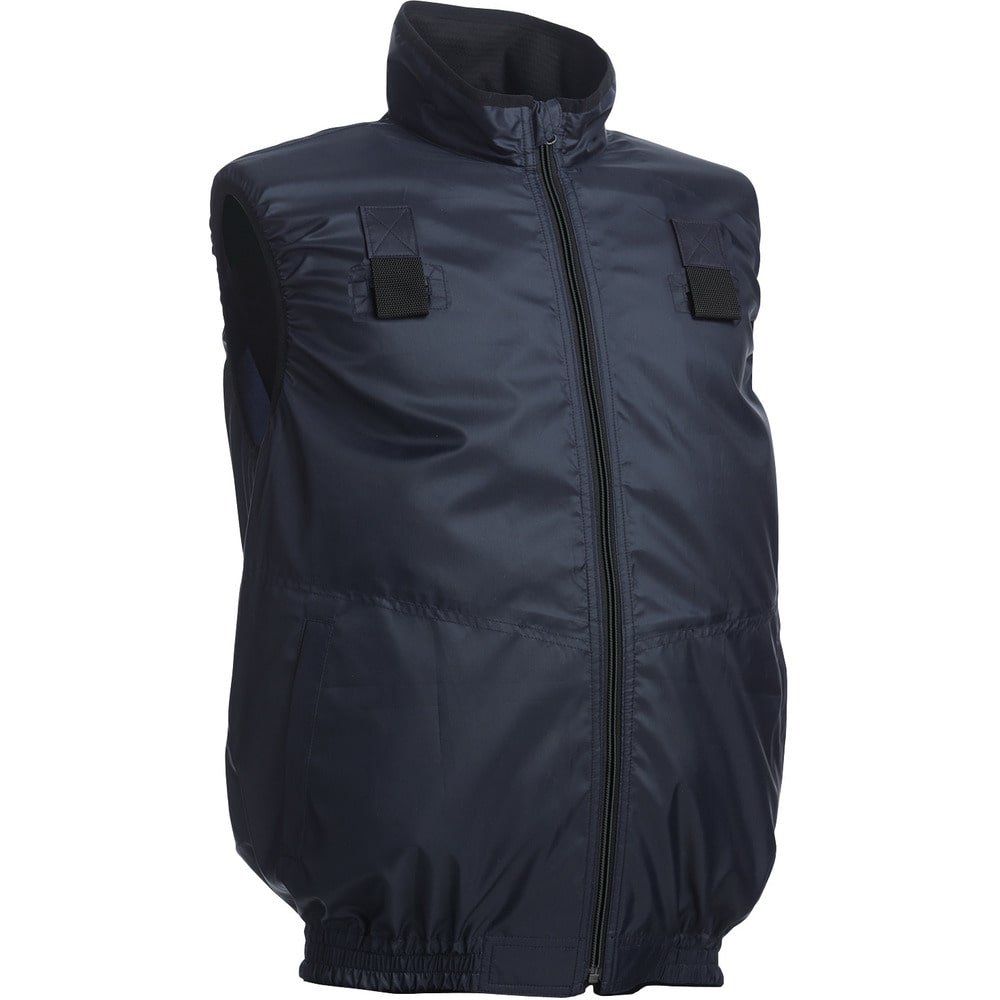 ●ランヤードの取り出し口には、YKKのロック式ファスナーを採用し、スライダーを倒してファスナーを固定することで、衣服の空気を逃がしにくくします。●胸部の左右のフック掛けで、2丁掛けランヤードに対応しています。●襟は通常のウエアよりも高いトールカラーを採用したことで、より上方へ風を送ることが可能になり、ヘルメット内部まで風を送り込めます。●肩口をゴム仕様にすることで隙間をなくし、ファンの風の流出を防ぎます。●ウエア背面内側にメッシュを張ることにより空間ができ、スムーズな風の循環をアシストします。●色:ネイビー●サイズ:M●着丈(cm):66●胸囲(cm):118●肩幅(cm):45●フルハーネス対応ベストタイプ 質量183g