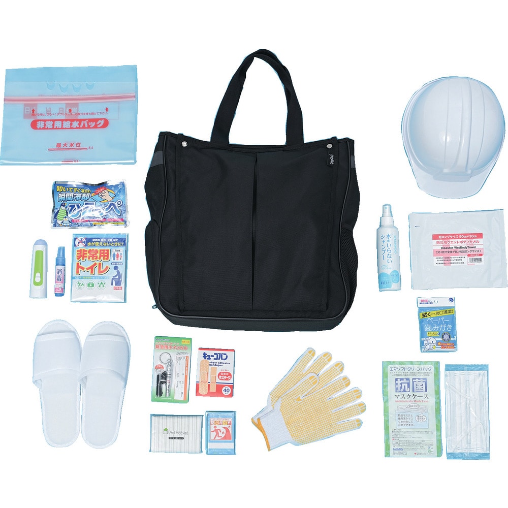 ●もしもの時に本当に役立つ防災グッズを厳選しています。●防災士が厳選した豊富なラインナップになっています。●機能性・収納性がバツグンです。●背面にキャリーケースにドッキングできるZIPポケット付きで避難移動時も便利。●両サイドには反射材付き。●断水時にも水なしで使えるグッズ入り。●ペーパー歯磨き・水のいらないシャンプー・ウェットボディタオル●ヘルメットの単独収納スペースがある現場用バッグ「GENBAG TOTE」の特色を生かしたGENBAG TOTE防災セットができました。●外形寸法(mm)幅:520●外形寸法(mm)奥行:390●外形寸法(mm)高さ:235●タイプ:1人用●ヘルメットの単独収納スペースがある現場用バッグ「GENBAG TOTE」の特色を生かしたGENBAG TOTE防災セットができました!●バッグ本体:GENBAG TOTE●バッグサイズ:約38×41×15cm 質量2610g