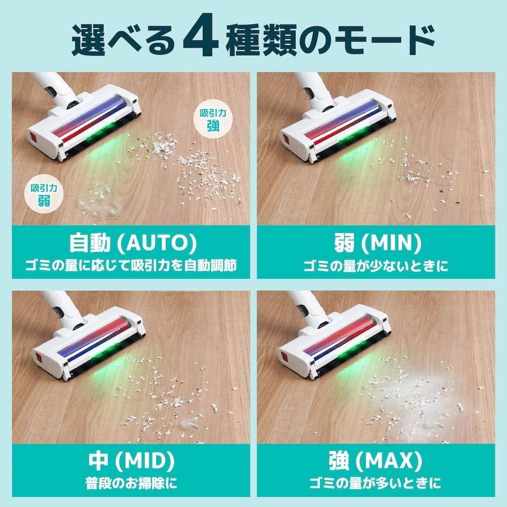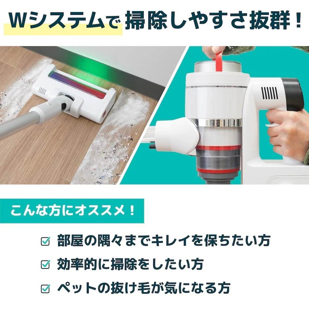 サイクロン 掃除機 コードレス 26Kpa ホワイト お手入れ簡単 Wローラー LEDライト ディスプレイ 着脱式バッテリー 隙間ノズル ブラシノズル