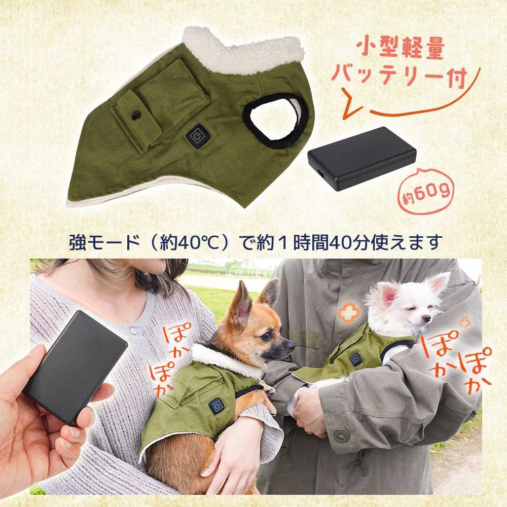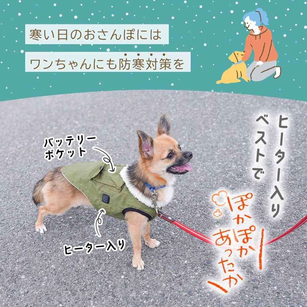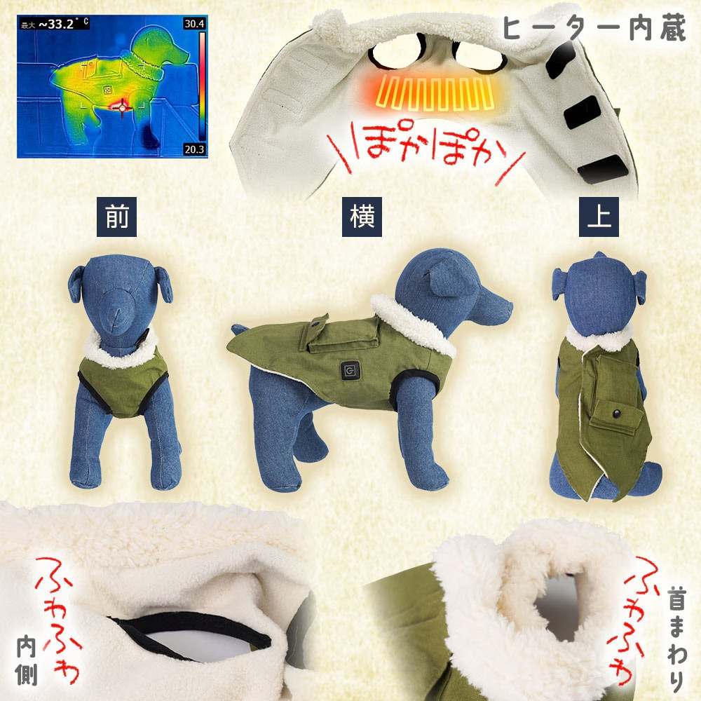 カーキ 犬 防寒 防寒着 着せやすい 小型犬 超小型 散歩 コート ヒーター 寒さ対策 バックオープン 背中開き