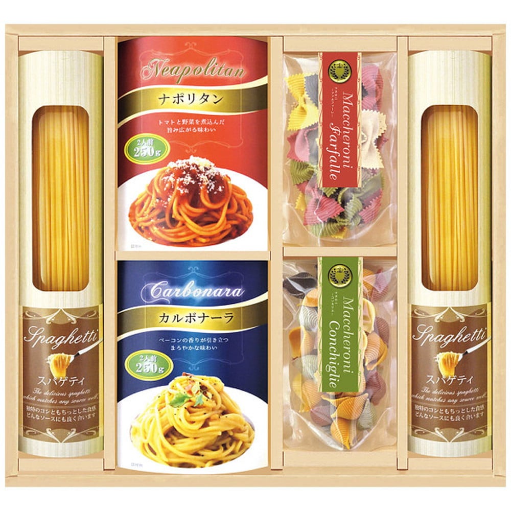●スパゲティ130g×2、パスタソース(ナポリタン2人前・カルボナーラ2人前)各250g×各1、カラーパスタ・コンキリエ(プレーン・ほうれん草・ウコン・ビート・黒ニンジン)60g×1、カラーパスタ・ファルファーレ(卵・レッドチャード・オレガノ・ほうれん草・イカスミ)40g×1