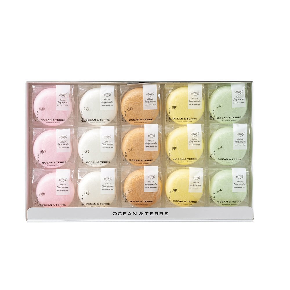 【北海道産かぼちゃスープ最中】最中(もち米(国産))、かぼちゃパウダー(かぼちゃ(北海道産))、でん粉、砂糖、クリーミングパウダー、食塩、ぶどう糖、粉末植物油脂、バターミルクパウダー、チーズパウダー、粉飴、れん乳パウダー、脱脂粉乳、玉ねぎ、小麦粉、香辛料、うきみ(クルトン)/着色料(赤3、赤106)、調味料(アミノ酸)、(一部に小麦・乳成分・大豆を含む)【北海道産玉ねぎスープ最中】最中(もち米(国産))、ぶどう糖、粉飴、食塩、でん粉、たん白加水分解物、玉ねぎ(北海道産)、ガーリックパウダー、小麦粉、酵母エキス、香辛料、うきみ(オニオンスライス(玉ねぎ(北海道産)))/調味料(アミノ酸等)、着色料(カラメル)、酸味料(クエン酸)、(一部に小麦を含む)【北海道産男爵いもスープ最中】最中(もち米(国産))、男爵いもパウダー(男爵いも(北海道産))、ぶどう糖、粉飴、粉末植物油脂、食塩、チーズパウダー、乳糖、でん粉、玉ねぎ、脱脂粉乳、酵母エキス、たん白加水分解物、小麦粉、香辛料/調味料(アミノ酸)、(一部に小麦・乳成分・大豆を含む)【北海道産スイートコーンスープ最中】最中(もち米(国産))、クリーミングパウダー、スイートコーンパウダー(スイートコーン(北海道産))、でん粉、砂糖、ぶどう糖、粉飴、食塩、粉末植物油脂、バターミルクパウダー、チーズパウダー、れん乳パウダー、脱脂粉乳、玉ねぎ、たん白加水分解物、小麦粉、香辛料、うきみ(コーン(北海道産))/着色料(黄4、カロテン)、調味料(アミノ酸等)、増粘剤(キサンタン)、香料、(一部に小麦・乳成分・大豆を含む)【北海道産アスパラスープ最中】最中(もち米(国産))、クリーミングパウダー、スイートコーンパウダー、アスパラガスパウダー(アスパラガス(北海道産))、でん粉、砂糖、粉飴、食塩、粉末植物油脂、ぶどう糖、チーズパウダー、バターミルクパウダー、れん乳パウダー、脱脂粉乳、玉ねぎ、小麦粉、たん白加水分解物、香辛料、うきみ(クルトン)/着色料(黄4、黄5、青1、カロテン)、調味料(アミノ酸等)、増粘剤(キサンタン)、(一部に小麦・乳成分・大豆を含む)